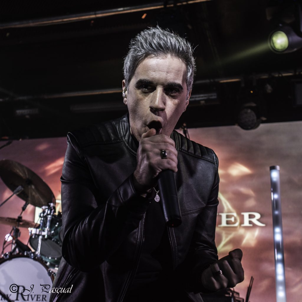 Casi sin pausa nos encontrábamos «Segundo Intento» mientras en la pantalla trasera, que dio mucho juego durante la noche, se proyectaba el lyric video, de la misma, que nos acompañaba un poco más para disfrutar de los toques melódicos y progresivos del tema. «Camino» guitarras Hard rockeras, puños en alto y Ángel pasando de los matices más graves a los tonos más agudos, nos trasladaba a su álbum 2038, para no abandonarlo en los dos siguientes temas «Fundido en Negro» calentaba ya definitivamente el ambiente, con Ángel bailando y saltando a lo largo del escenario mientras animaba al publico a aplaudir y hacer lo propio, y un Guillermo espléndido en la ejecución del riff pegadizo del tema. Los teclados de Miguel, tomaban protagonismo en «Perder el Norte» con especial mención para el punteo central nacido desde las cuerdas de la guitarra de Matías.