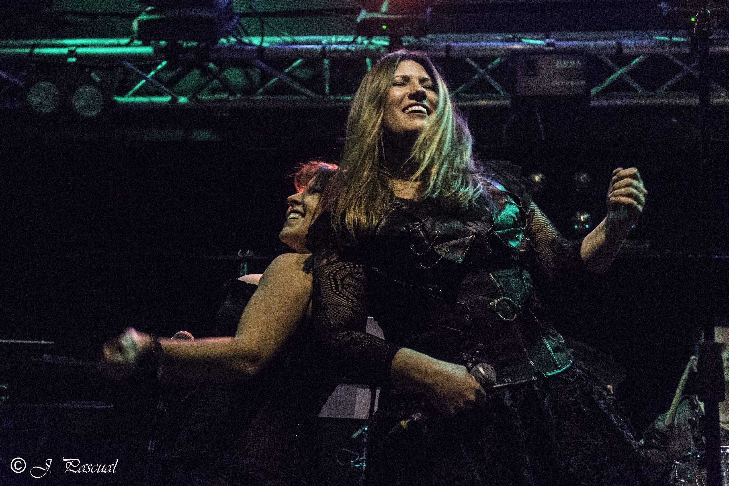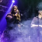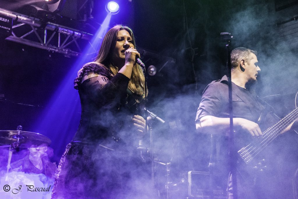 Cumpliendo con los horarios establecidos llegaba el momento de KOVEN con la potente voz de Ana Gárcol y al frente del retorno de el proyecto, acompañada por una formación de autentico lujo, Matías Sosa (DREAM MAKER) y Adrí a las guitarras, Álvaro Martínez (SUMMIT) al bajo, Alma Campos (VESTIGIA y ROCKING LADIES) en los teclados y Nacho Ortiz (LEYENDA y BAJO PRESIÓN) a las baquetas, además de contar con la presencia para la ocasión de Mariafer Acosta (ICARUS DREAM) a los coros. «Los dones» era el tema elegido para comenzar la batalla tal y como reza la primera estrofa del mismo, para continuar sin apenas descanso con «Alas de Papel» incluido al igual que tema anterior en su álbum En el otro viento, que se presentaba en directo 8 años después de su grabación. La nomina de invitados de la noche era extensa por lo que no era de extrañar que ya en estos primeros compases subiera el primero de ellos al escenario Cesar L. Pazos, guitarrista y fundador de BRIDGE TO NOWHERE, para acompañarles en «Tierra de por medio» tema que en su momento compuso y cedió a KOVEN.  «¿Quien lo agradecería?»  de nuevo con la banda y cuyo video clip si no lo habéis visto, merece una visita, las teclas de Alma nos marcaban el inicio de un nuevo tema «Bella» con la voz de Víctor Hernández  ORIÓN CHILD, que ya en su momento grabo el tema en el disco, dándole continuidad en solitario, para unírseles después tanto Ana como el el resto de la banda.
