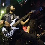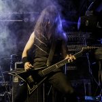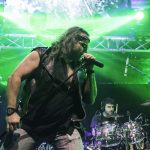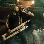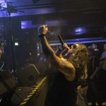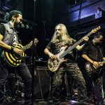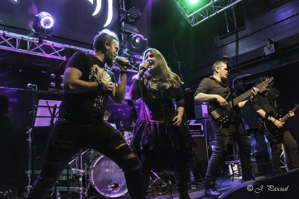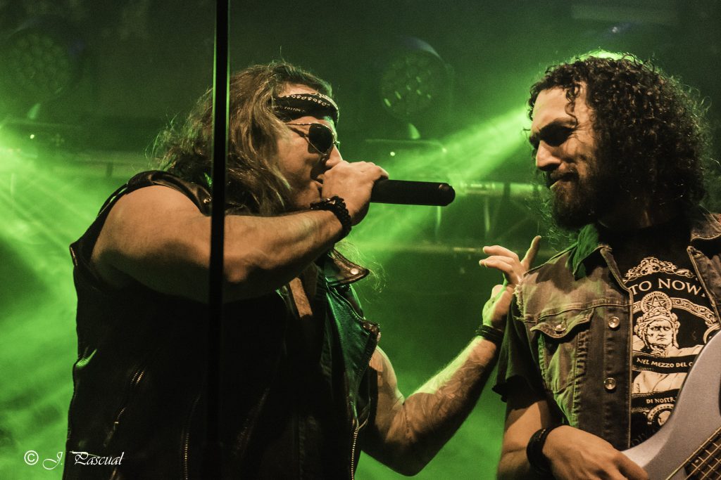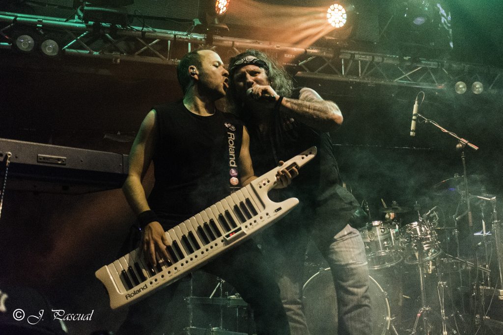 Con bastante puntualidad las luces de la sala se apagaban para dar paso a VOODOO TALES banda que siempre ha mantenido una magnifica sintonía con KOVEN y en la que actualmente milita como bajista Rubén Otero, el que es su momento fuera guitarra de KOVEN. El quinteto de Carabanchel nos ofrecieron un setlist compuesto por once temas, que arrancaron con una buena dosis de Hard Rock de la mano de “En el Corazón De La Ciudad” la banda sabe moverse como nadie en un territorio entre el Hard Rock más clásico, riffs directos y metaleros al más puro estilo del Heavy de la vieja escuela, con letras en castellano. Formada por Julián a la guitarra, Joan a la voz, Javier a los teclados, Raphael a la batería y el ya mencionado Rubén al bajo, fuero desgranado su repertorio que hizo las delicias del publico asistente, por cierto un dato a destacar es la cantidad de niños de corta edad que había entre el mismo, creo que llegue a contabilizar más de una docena, todos ellos con sus cascos de protección auditiva, como debe de ser,  saltando en primera fila y pasándoselo en grande. especialmente en los momentos más cañeros como durante la interpretación de «Rabia» o el tema que sonó a continuación al que la banda bautizo entiendo que de manera provisional como la «Nueva rápida a doscientos» y que formara parte de su próximo trabajo. «Negros pensamientos» con Javier en primera fila con su Keytar colgado, nos acercaba al final, «El mundo a tus pies» ponía a toda la sala a saltar antes del apoteósico final con Joan bajando a cantar entre el publico «La última oportunidad».