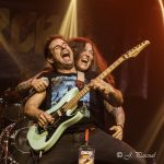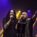 La noche prometía y el primero de los invitados Pacho Brea, se subía al escenario, para cantar junto a Kike un par de temas «Alma Libre» y «Falsa y Mortal» en la que se les uniría un gran José Rubio a la guitarra, que se marcaría un magnifico solo durante la misma. «Contra Viento y Sol» arrancaba con la guitarra de Manu, continuando con la senda cañera. Llegados a ese momento Kike invitaba a Ángel Gutiérrez, el patrón como Kike le denominaba a unirse a la banda para tocar un par de temas «Alza tu bandera» y el que probablemente fuera el tema más calmado de la noche «Del Mismo Infierno» en los que pudimos ver a un sonriente Ángel a la guitarra, al que se le notaba plenamente satisfecho de como estaba trascurriendo todo. «Yo te Oigo» ya sin Ángel sobre el escenario volvía a retomar la potencia a pleno rendimiento que ya no nos abandonaría en toda la noche.