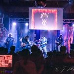 Jesús Puente, presentador de Universo Rock, era el encargado de ejercer de maestro de ceremonias, y presentar a FÜEL la primera banda en subirse al escenario de la Vizzio, banda a la que casualmente la última vez que vi en directo fue precisamente en ese mismo escenario durante la celebración de la última edición del festival Póker de Ases, del que por cierto ya tenemos fecha para su octava edición y en el que podremos ver de nuevo a ambas bandas compartiendo cartel, pero eso es otra historia que ya os contaremos más detalladamente en otro momento. Volviendo a lo que estábamos antes de que todos los miembros de la banda ocuparan su lugar un video en el que una llamada de teléfono y una serie de explosiones servían de separación a imágenes de las portadas y unas breves notas de algún tema de cada uno de los trabajos de la banda para acabar en la portada de «LA MÁQUINA DEL TIEMPO», el que será su próximo trabajo y que pudimos escuchar en directo a lo largo de la noche.