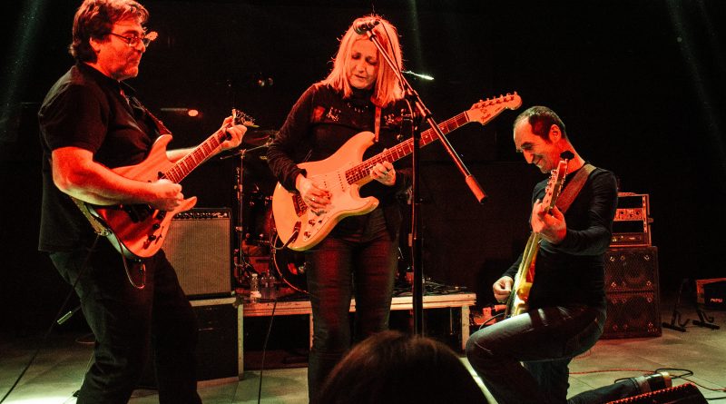 «Miss Hyde» marcaba contundente el inicio de la noche con Aurora Beltrán a la guitarra y la voz, Lolo Beltrán, guitarras, Juanma Ugarte al bajo y Daniel Lizarraga a cargo de la batería. «Lujuria» muy en la línea ochentera americana del Hard Rock, con un magnifico slide de guitarra por parte de Aurora en la parte final. «Él lo Predijo» ese homenaje a Lou Reed y su Velvet Underground, que se encontraba incluido en Arido (1992), Una siempre comunicativa Aurora que fue sembrando cada presentación y cada pausa con comentarios sobre los temas e interacciones con el público, nos contaba el origen de «Mis Hijos» cuando ella trabajaba limpiando casas, aprovechando para hacer un pequeño alegato de clase. El presente más inmediato llegaba con «Princesa Hada», la revisión que Tahúres regrababa del tema que en su momento Aurora compuso para el álbum Hadas y Princesas de los pamplonicas ESTRAGO, entre bromas y piropos del público, nos adentrábamos en «Arde Europa» de nuevo una letra con mensaje, marca de la casa en esta ocasión sobre el papel de las mujeres en la guerra.