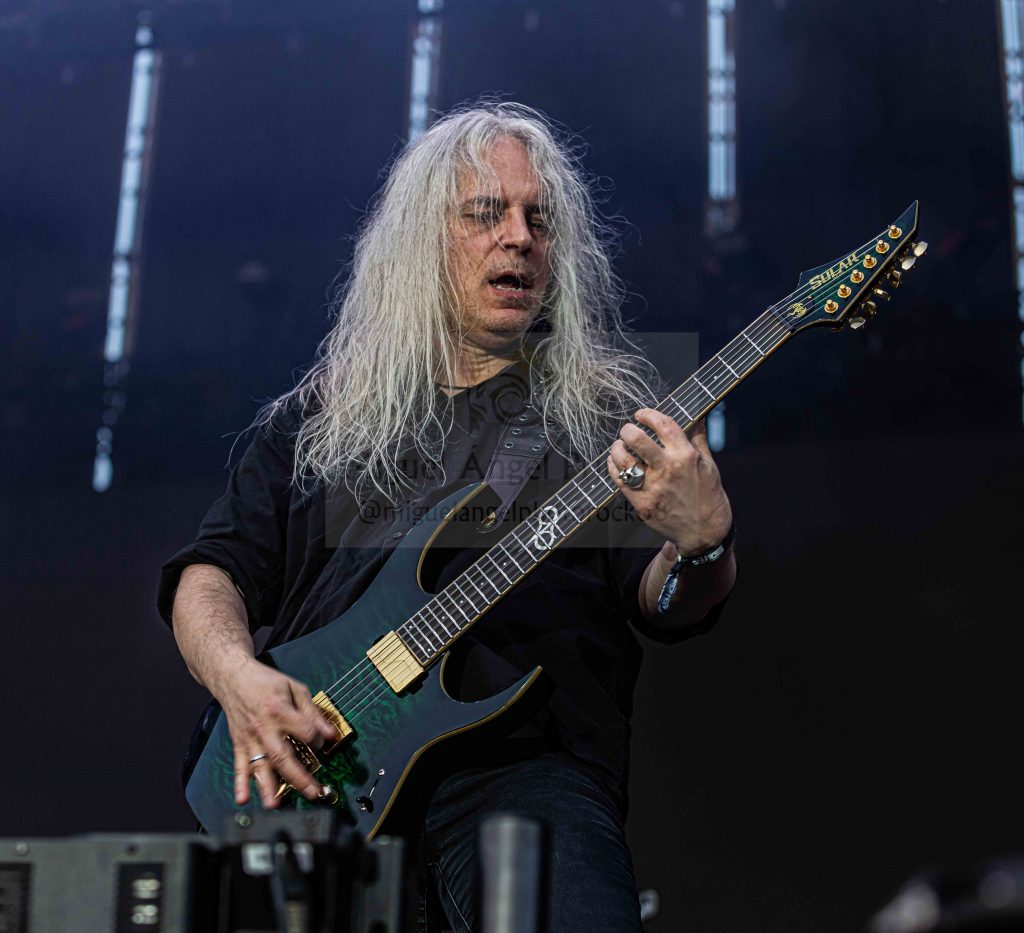 ROSS THE BOSS desató una auténtica locura en la explanada al arrancar nada más pisar el escenario con «Blood Of My Enemies» y un Ross Friedman al que casi notamos impresionado del ímpetu con el que la gente recibió al grupo, un combo donde la figura de Marc Lopes como frontman se llevó la palma no sólo por ese inimitable e inigualable registro vocal sino por una actitud de continuos guiños al respetable, culminando éste su show con bajada del escenario para saludar chocando la mano a los incrédulos que ocupaban las primeras filas.