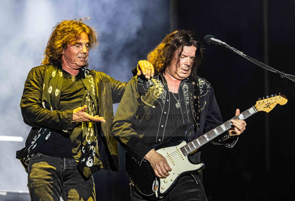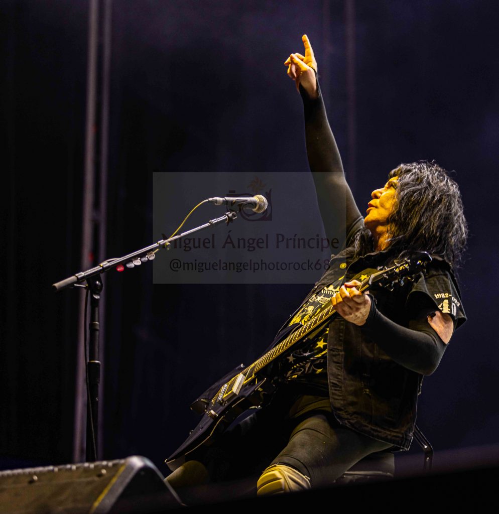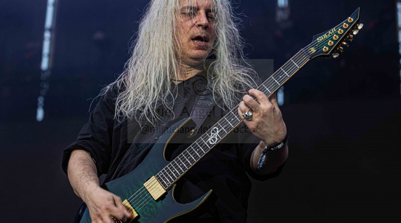 Un impresionante como siempre Alberto Marín a la guitarra hizo los honores con riffs y punteos que se intercaló generosamente con otro virtuoso como lo es Cecilio Sánchez-Robles, dos talentosos que siempre juegan en casa conocedores tanto de las seis cuerdas como del espectáculo de Heavy Metal que sus temas infunden cerrándose el show con canciones más de nueva hornada como fueron «Tu Verdad» o «Acordes Mágicos».