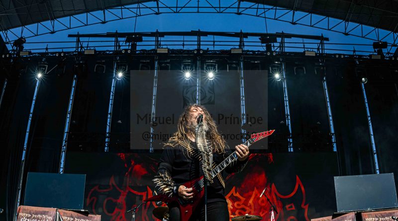 Empezando con «Bestial Devastation», se comenzó el combo a imponer sobre las tablas con ganas de dejar huella al continuar con «Antichrist», «Necromancer», «O Fortuna» o «Morbid Visions» creando ambiente bajo sus miradas y laudas hacia los clásicos del grupo brasileño muy centrado en sus tiempos primigenios dentro de una nostalgia muy aplaudida y bien entendida por el enfervorecido público que se entregó sin condiciones.