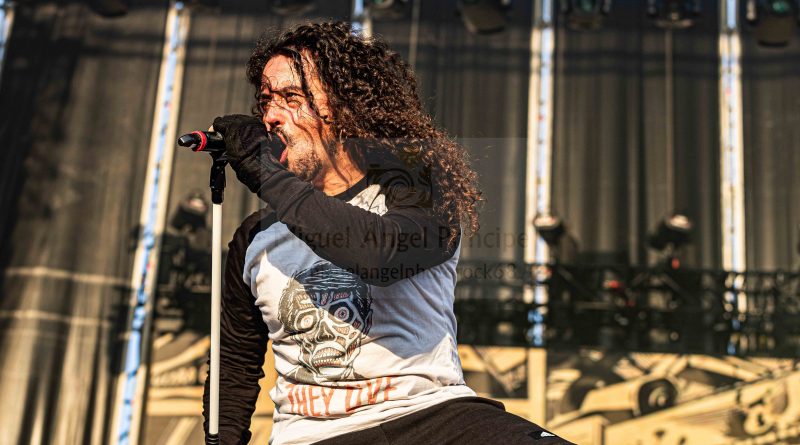 PANTERA encabezó la singladura del sábado como una de las bandas más legendarias del puro Metal que ocultó su montaje tras un telón haciendo aún más atractiva la espera que por fin y cuando se abrió éste, levantó al mismo tiempo y al unísono un grito llevado a cabo por miles de almas que unidas bajo un mismo signo alzaron los brazos en actitud guerrera para recibir a estos jinetes que sin ser la formación original, despertaron pasiones nada más pisar la tarima presagiando que no iba a ser para menos.