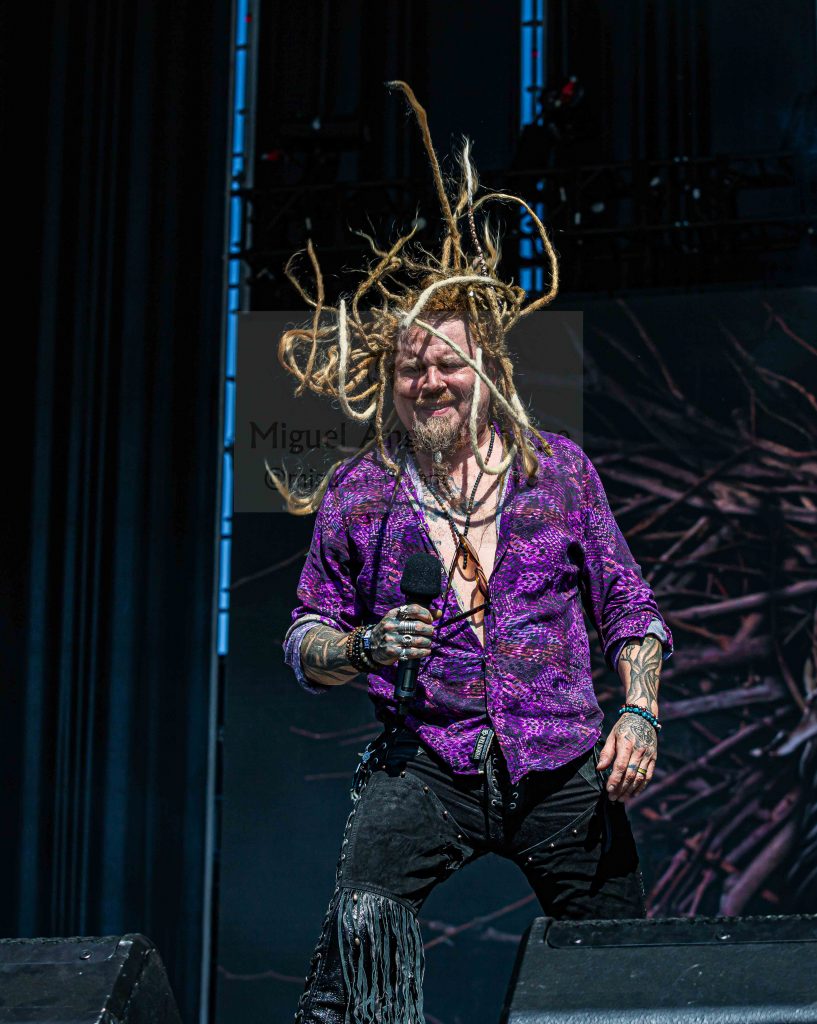 KORPIKLAANI congregó a un gran número de público que acogió con ganas un Folk Metal llegado desde Finlandia en formato muy refrescante que contó con un directo muy atractivo tanto por la puesta en escena como por la propia performance del grupo, suponiendo su actuación una rebaja del Hard al llenar la atmósfera con sus particulares melodías cargadas de buenas vibraciones que desembocaron en el primer pogo del día tras la conocidísima «Vodka».