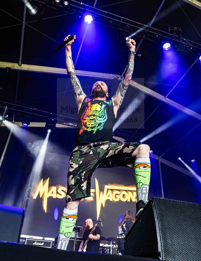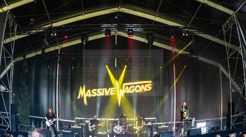 MASSIVE WAGONS se presentaba como una interesante apuesta por el Rock británico que copó la carpa pequeña desplegando toda su energía para hacerse valer ante la avalancha más metalera, consiguiendo el grupo sorprender con temas pegadizos que convencieron a la gente siendo el más destacable por su imantada composición el triunfal «Nails».