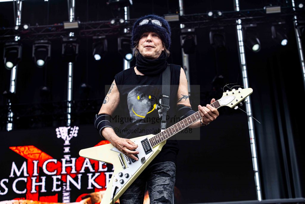 MICHAEL SCHENKER se abrió paso con su inconfundible indumentaria de gorro y pañuelo al cuello iniciando el esperado show con la instrumental «Into The Arena», notándose ya desde el comienzo al guitarrista muy cómodo moviéndose más de lo habitual sobre la tarima estableciendo el que fuese parte de UFO y de SCORPIONS un interesante feedback con la gente, mostrándose más abierto a interactuar que en otras ocasiones y perfectamente ensamblado con el que sin duda es su pareja de baile perfecta Robin McAuley.