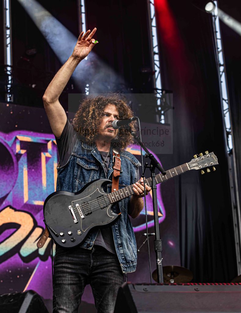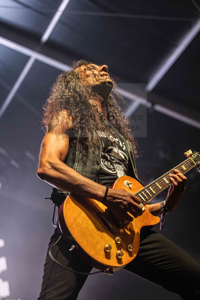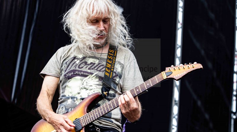 Un guitarrista que no paró de correr de un lado para otro integrando a todos los allí presentes a la par que gestionaba imparables riffs, se mostró imprescindible en las melódicas a la par que vigorosas «Saturday Night (Hallelujah)», «Battlegrounds» o «Black Rain» que pudieron presumir de un sonido nítido acaparando las ovaciones de la gente para culminar en un auténtico delirio musical montado por el grupo al sonar acordes y estribillo del no por esperado menos aplaudido «Viva La Victoria», cerrándose con él una actuación que sin duda convierte a la banda en todo un referente.