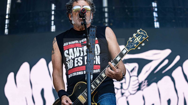 El grupo jugó con unos potentes fuegos como aderezo a su actuación y unos focos que combinaron a la perfección luces y sombras marcando según el momento de la actuación las diferentes siluetas de los músicos, un quinteto que se centró en no dar tregua al enloquecido respetable con temas de ayer y de hoy que tuvieron como siempre el denominador común del mensaje social, siendo claros ejemplos de ello «Perra Vida», «Tiempos Oscuros», «Política Del Miedo» o «Palomas Y Buitres» que fueron cantados de principio a fin por una eufórica multitud que disfrutó de los S.A. con todas sus fuerzas. La nota final de lujo si es que era posible superar la actuación, la puso Guille de ANGELUS APATRIDA cantando junto con Juan el tema «Ratas» en un final inesperado que bordó un show inmejorable.