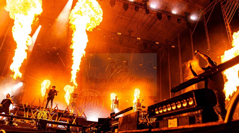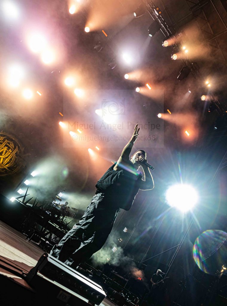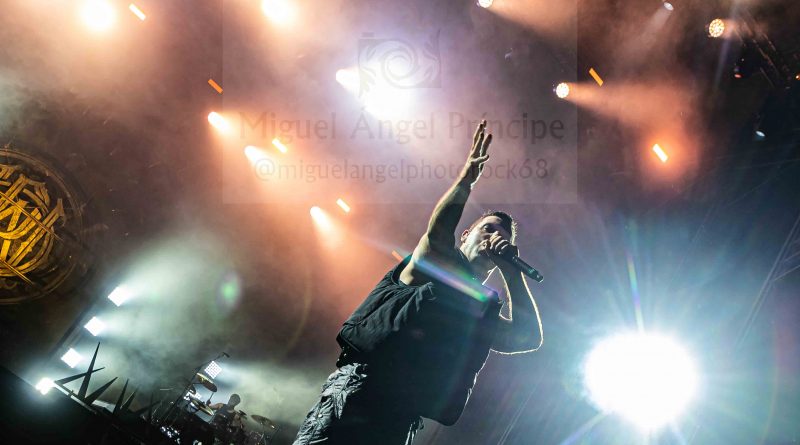 PARKWAY DRIVE llegó para reventar literalmente la noche llenándola de luz, color, sonido, actitud, entrega, espectáculo y en definitiva un pura locura sobre el Stage Fest donde se sirvió en bandeja a la gente una auténtica exhibición tanto musical como visual que dominó la noche durante noventa minutos, inaugurándose ésta con un «petardazo» a modo de pistoletazo de salida para un «Glitch» de marcado guitarreo experimentando sonidos con cierto aire Prog y una cadente base rítmica firme con el apoyo tanto de las palmas de la gente como de los persistentes e incansables «eh, eh, eh».