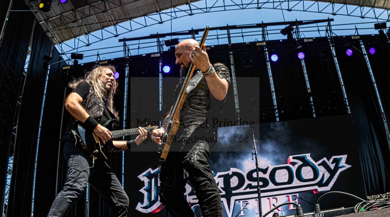 El Stage Fest se inauguró con RHAPSODY OF FIRE que apeló a sus temas más queridos o clásicos como «Unholy Warcry» junto a los de más reciente hornada tipo «I’ll Be Your Hero», sacando a todos ellos su cantante Voli mucho partido centrándose en escrutar de lado a lado la tarima para llegar a todos los incondicionales que ya los coreaban a altas temperaturas, una pasión de casi obertura del evento que el grupo agradeció con grandes para el directo como «Challenge The Wind», «Dawn Of Victory» o «Emerald Sword» con wall of death incluido.
