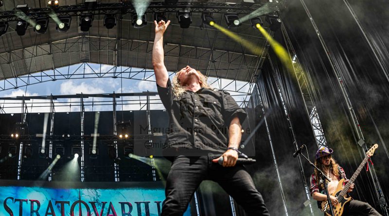 STRATOVARIUS arrancó la tanda de Power Metal a una hora temprana que el combo afrontó con gran entusiasmo contagiando a sus seguidores, unos valientes espectadores que rodearon el escenario para cantar junto con los finlandeses los temas más adecuados para que el público se involucrase en el espectáculo y ofreciendo así las que nunca fallan, garantizándose que la feligresía se apasionara desde el primer momento con su melódico más potente plasmado en «Unbreakable», «Hunting High And Low» o «Black Diamond» que no fallaron en su propósito de gustar y mover a la gente.