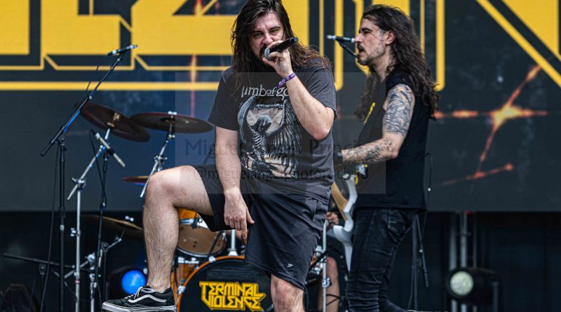 El sábado 06 comenzó en el Stage Fest con TERMINAL VIOLENCE como banda local e igual que el día anterior a una hora muy temprana que siempre supone un desafío para los grupos, un pelea de la que estos thrashers salieron victoriosos haciéndonos olvidar durante sesenta minutos las duras temperaturas para arrastrarnos a un bien gestionado Old School Thrash.