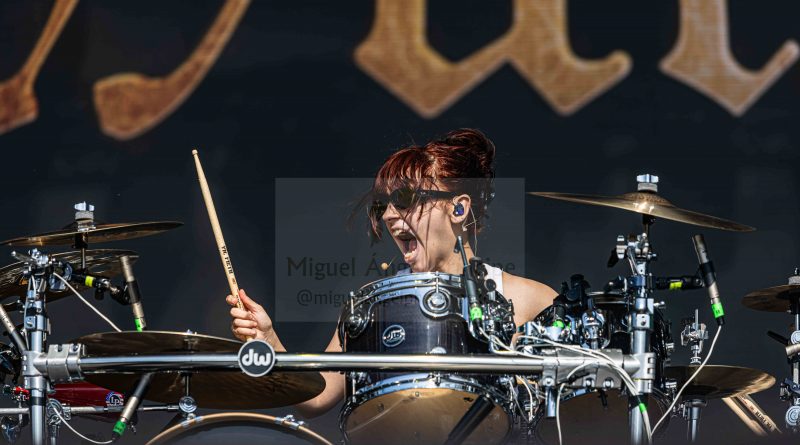 THE BABOON SHOW en formato cuarteto, se apoderó de la carpa para arrasar la misma como un ciclón encabezado por Cecilia Boström con una explanada en el tercer escenario literalmente abarrotada para disfrutar de su afamado y con razón show en directo, un espectáculo donde estos suecos consiguieron agotar a gente ya breada en estas lides que aún así se rindió ante «trallazos» como «You Got A Problem Without Knowind It» o «God Bless you All» en los que la vocalista decidió pasearse entre el público para dejar sin aliento al respetable involucrando a todos en el concierto, ofreciendo el grupo tanto a pie de pista como sobre el escenario toda una lección de frescura y Metal en estado puro.