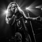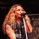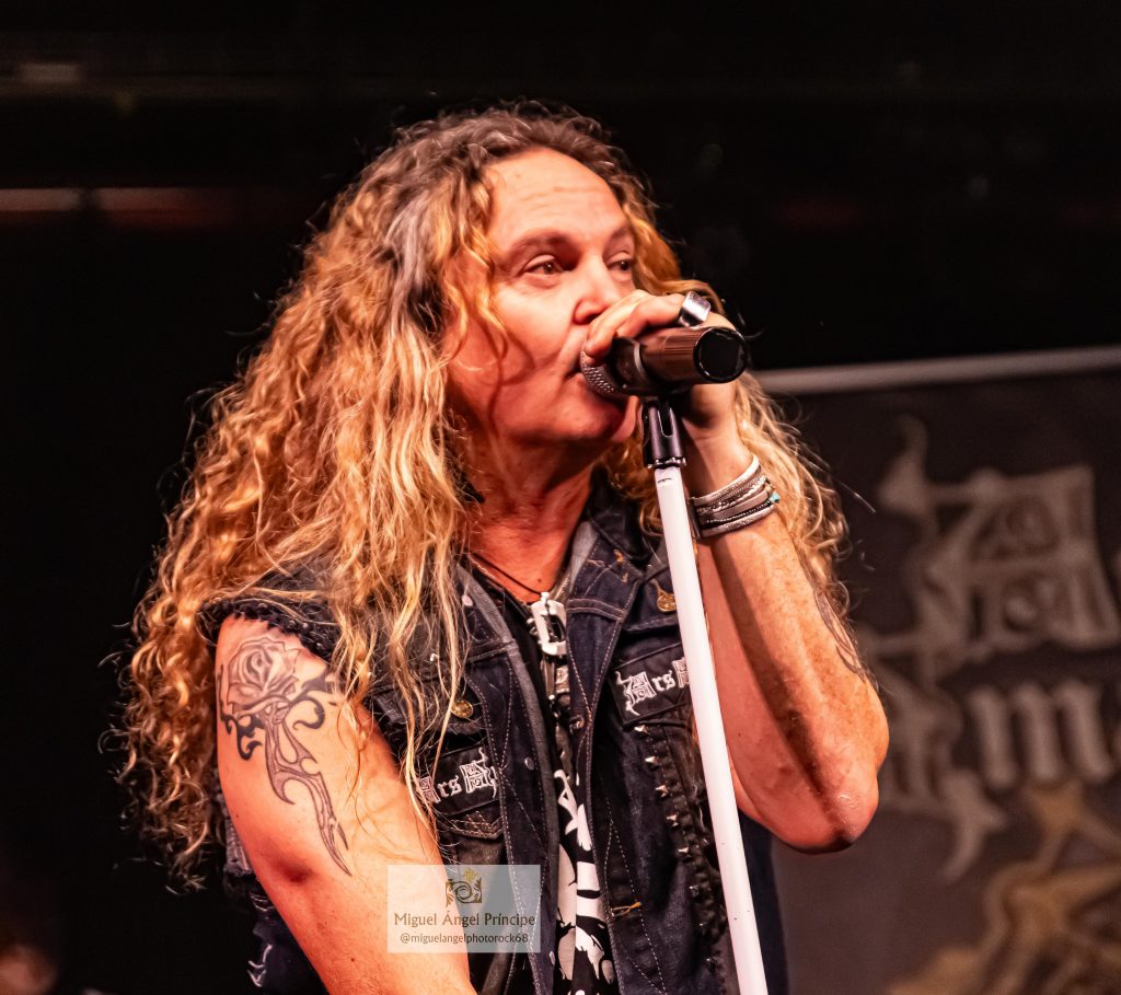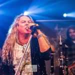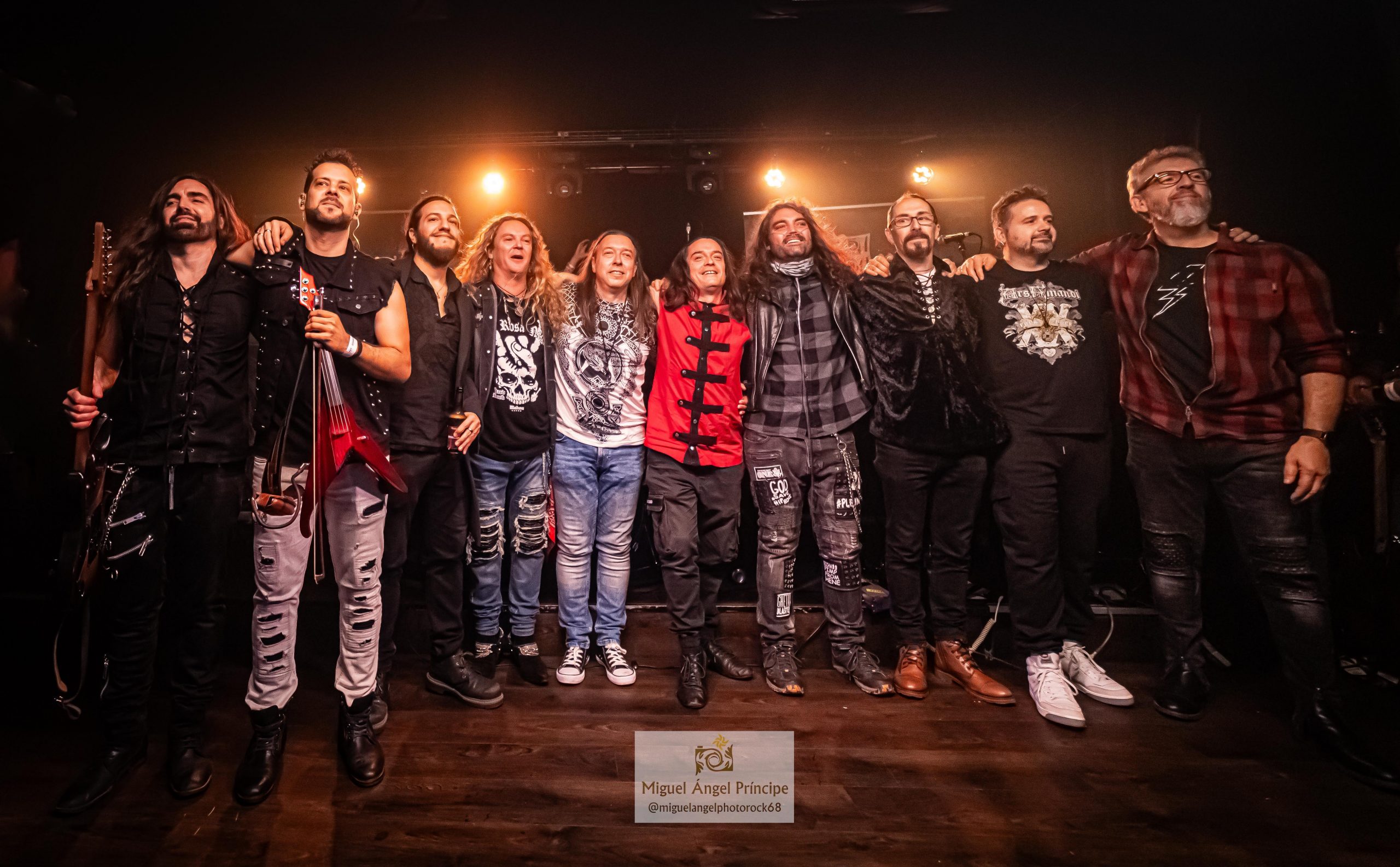 Sucesión de invitados para lo que fue una locura final con la llegada de tres grandes clásicos muy queridos por la gente como la primera «Gritando Al Mar» de su disco Camino Al Destino (2005), una canción motivadora en letra y música gestionada intensamente sobre el escenario gracias a esa combinación perfecta de brillo guitarrero que con tanta elegancia llevan a cabo Miguel Ángel Alejandro, dos genios intercambiando punteos y destreza sin piedad al riffear las seis cuerdas para arrancar de las mismas un puro sonido a Hard Rock como en «El Poder De Caelia» o en «Ábula», muy emotivamente interpretadas ambas por Dani Aller que lució vozarrón mimando cada giro y otorgando a cada palabra el valor que en su composición ha tenido, pues si algo caracteriza a los temas del grupo es el contenido a veces histórico y a veces de lucha e imbatibilidad muy arraigado con la tierra que a él le vio nacer y de cuyas historias nos hace a todos partícipes cuales protagonistas, estando precedidas estas tres joyas por «La Voz Que Me Guía» para la cual contó la banda con el cantante de ARKGABRIEL y también baterista de LA ORDEN DEL KAOS de nombre Juanky Álvarez quedando patente la versatilidad de este grupo al afrontar sin inmutarse diferentes momentos de su trayectoria musical convirtiendo el pasado en presente y haciendo con auténtica destreza, convivir canciones pretéritas con las actuales dotándolas a todas de la misma frescura con la que fueron creadas.