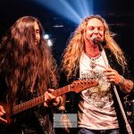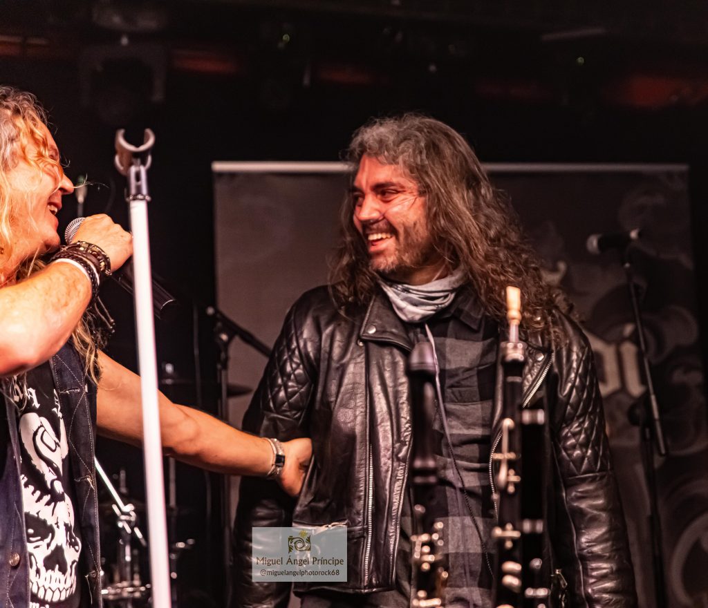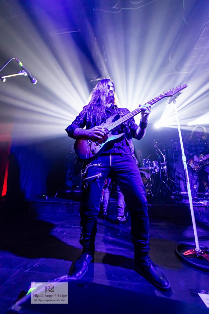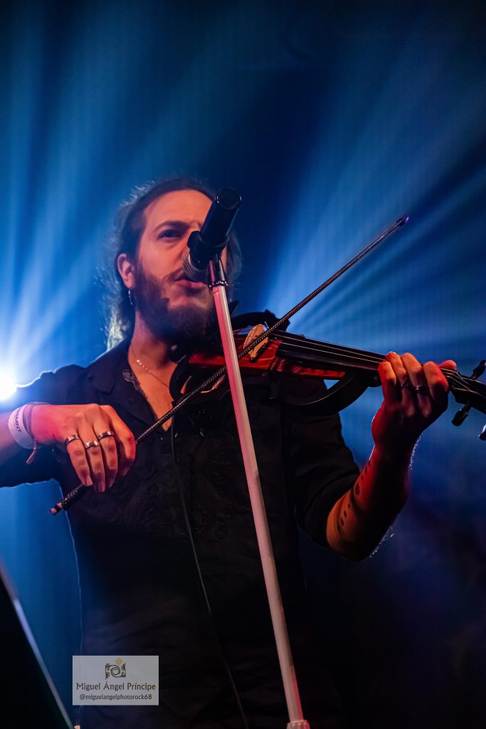 En continuo feedback con el público, se fueron sucediendo temas esta vez rememorando su último trabajo En Tierra De Castillos (2019) gracias a «Sus Últimas Horas», la cuarta pista de este extraordinario trabajo y muy propia para un directo tanto por la fuerza del mensaje de lucha que su letra contiene sobre la histórica Batalla De Villalar como por el sonido compacto de ambas guitarras, un binomio de seis cuerdas protagonizado por Miguel Ángel y Alejandro que literalmente arrasaron con notas afiladas durante toda la actuación, punteos imposibles, ritmos implacables a la par que melódicos y una compenetración entre ambos sencillamente perfecta, dos músicos que hicieron vibrar tanto éste como «Ven Hacia Mí» o «Desterrado De Tu Cuerpo» arropados por sus compañeros que no escatimaron igualmente en generosidad entregando lo mejor de su virtuosismo, ya que las ganas con las que la gente ovacionaba cada una de las canciones parecían duplicarse sobre el escenario convertido en un despliegue de emociones y calidad.