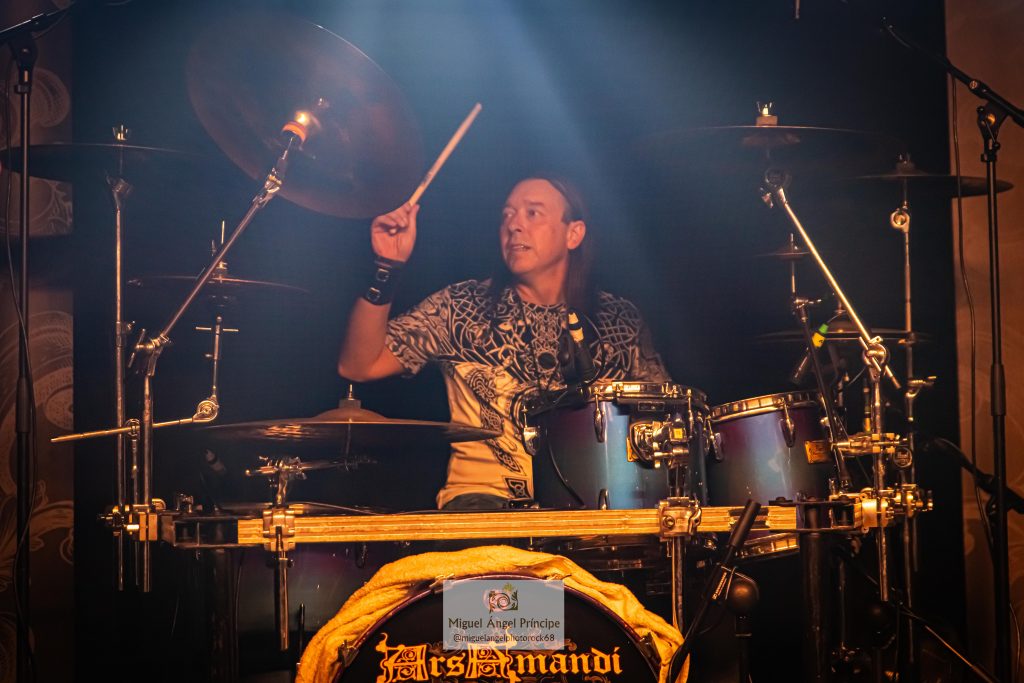 Los instrumentos más tradicionales y su enfoque enraizado en el folklore castellano esencia de ARS AMANDI, no eclipsan en absoluto las metaleras composiciones que la banda defiende siempre imbuida en un Hard Rock de trazas tan potentes como melódicas, un Rock sensible que en mayor o menor medida ha estado siempre presente en sus trabajos y tenido un papel importante tanto en los temas más duros como en los medios tiempos o en las baladas, algo para lo que ambas percusiones han sido claves en la historia del grupo siendo en este caso las baquetas de Óscar y el bajo de David Noisel piezas fundamentales para dar forma a las bases rítmicas destinadas a convertirse en canciones y mantener la cadencia de las mismas respetando el tiempo de los temas con contundencia, firmeza y seguridad como apreciamos en «No Abandones», «Manque Os Pese» o «El Bar», una versión esta última para la que sólo permanecieron en la escena Noisel, Aller y nuevamente Paco Moreno rindiendo homenaje a la entrañable canción de los no menos entrañables TOPO y que constituyó una delicia excepcional en este repaso a los veinte años del grupo.