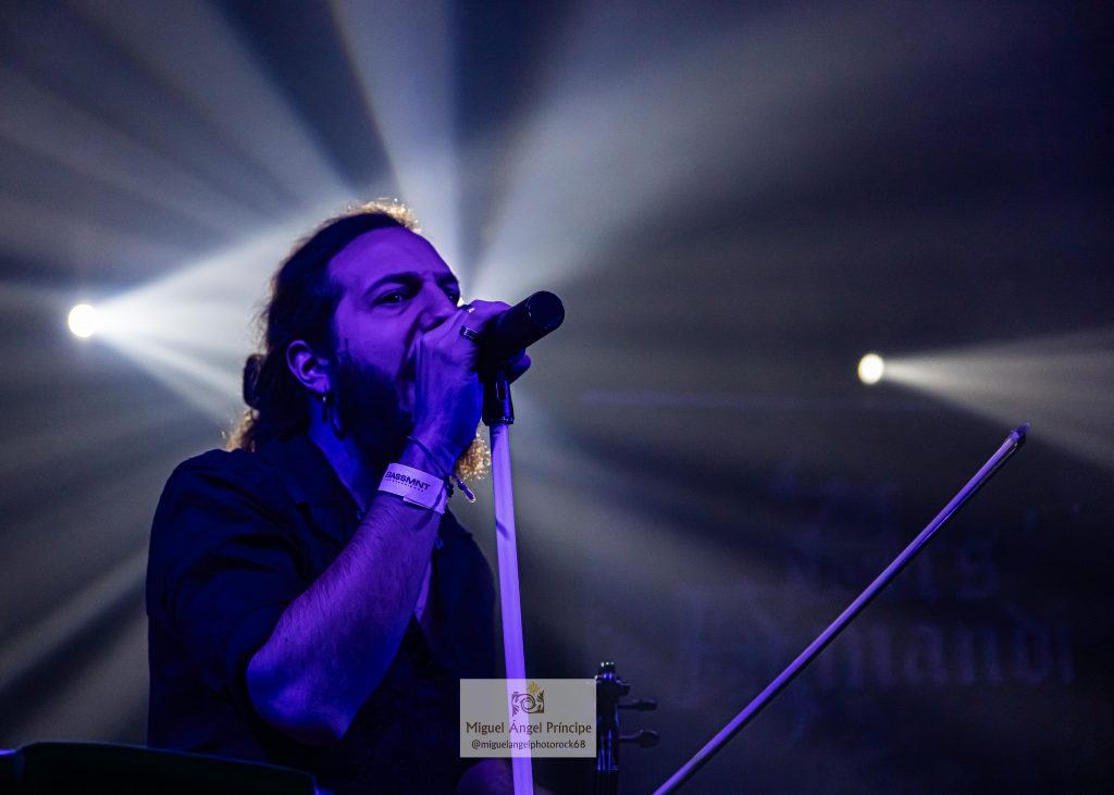 La garganta siempre cálida, bien modulada, juguetona y plena en registros de Dani Aller se mostró implacable con la interpretación de todos y cada uno de los temas, percibiéndose también como sintonía de ello lo cómoda que se sintió la banda ya desde el inicio y sobre todo la gran afinidad que todos los miembros de ARS AMANDI tienen, siendo un nexo de unión sobre la tarima la figura del violinista Dani Rodríguez que en cada actuación se supera a sí mismo si esto es posible tanto en actitud sobre las tablas como en la gestión interpretativa, moviéndose a la perfección entre sus compañeros para situarse de forma alterna al lado de cada uno dando fuerza a la actuación y ejerciendo como un perfecto maestro de ceremonias llegado su turno, pues los finos y siempre embaucadores sonidos que arranca con mimo a su violín fueron durante el directo un elemento vehicular en el cual todos se miraron, siendo siempre una pieza clave a la hora de dar paso a la voz o de tomar el relevo de la misma y muy acorde su violín con los variados elementos de viento que combina junto con su voz el cantante Dani Aller y que no faltaron en el siguiente «Desierto», para el cual contaron con el primer guitarrista de ARS AMANDI de nombre Paco Moreno que fue muy aclamado por el público antes, durante y después del recuerdo de este tema del primer disco de la formación y que con tres guitarras sobre la tarima sonó sencillamente descomunal.
