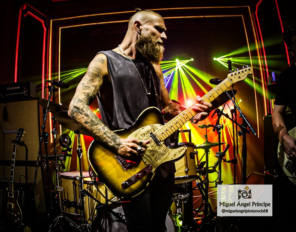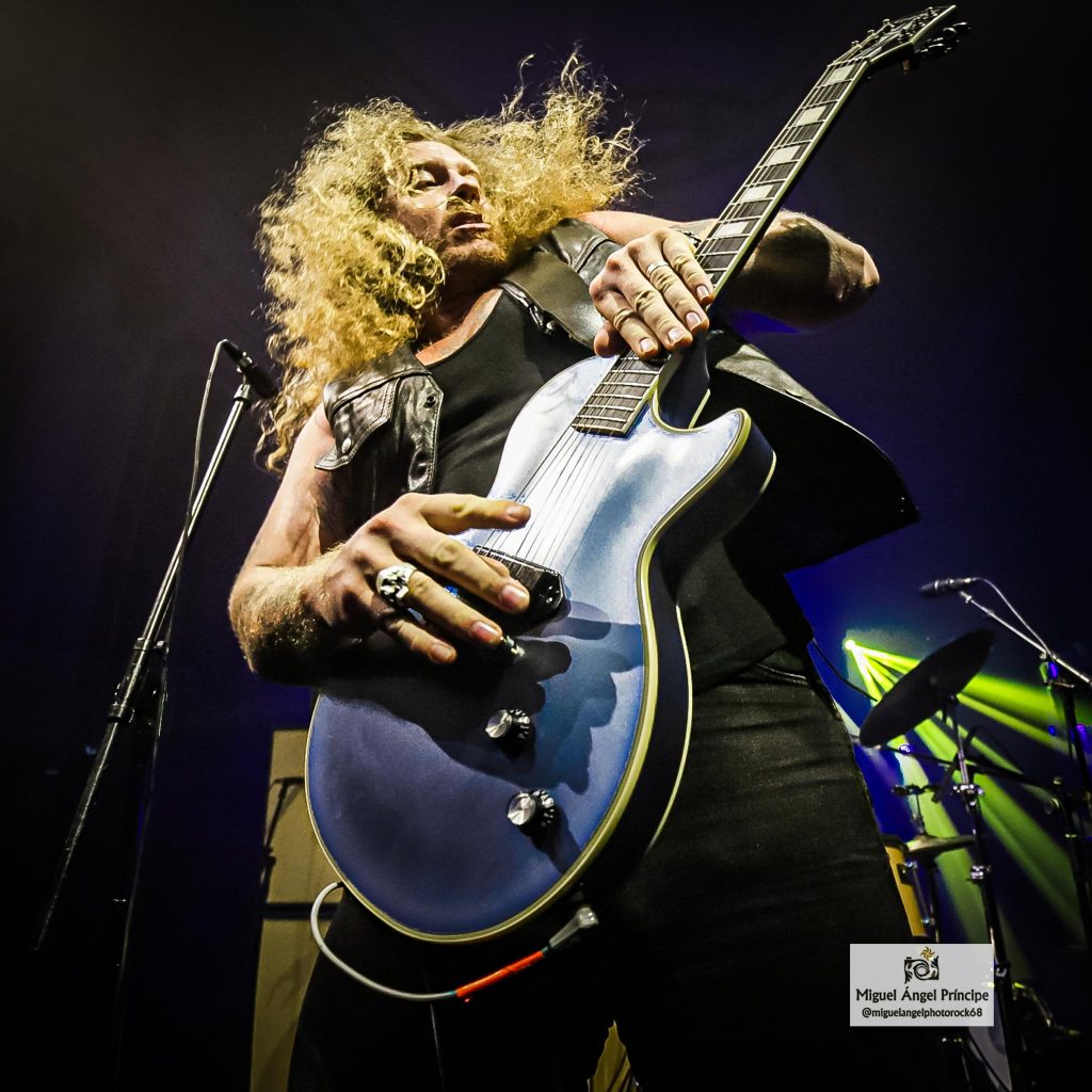 El impacto de ver tan de cerca tocar a alguien sin púa lo disfrutamos al máximo pues cuando Jared se aproximaba a la primera fila del escenario interactuando con el público al que también dedicó extensos y divertidos speeches, veíamos casi con incredulidad como los dedos se deslizaban por las cuerdas de su guitarra tocando las mismas sin filtros y generando esa sensación de lo auténtico, siendo tal vez una de las claves de su éxito la ausencia de aditivos y la limpieza con la que sus manos acarician el acero sin más armas que los propios dedos mostrándose éste como un huracán ante «Bad Roots» del que fue un importante artífice el baterista pues como un torbellino sentado frente a sus parches, adquirió protagonismo a lo largo de la noche al imponer in crescendo un ritmo de auténtica locura tanto en ésta como en las que sin duda supusieron dos de los momentos álgidos de la velada y que fueron «Honey Forgive Me» incluida en el álbum Black Magic (2018) y «Shadow Dancer”, un tema cargado de velocidad y optimismo que nos mostró un baqueteo sólido y certero muy propio para ensamblar una canción de velocidad salvaje marcando en la misma una cadencia medida a la vez que impetuosa para dejarnos ver de forma inmisericorde, las partes más despiadadas de un Rock marca de la casa.