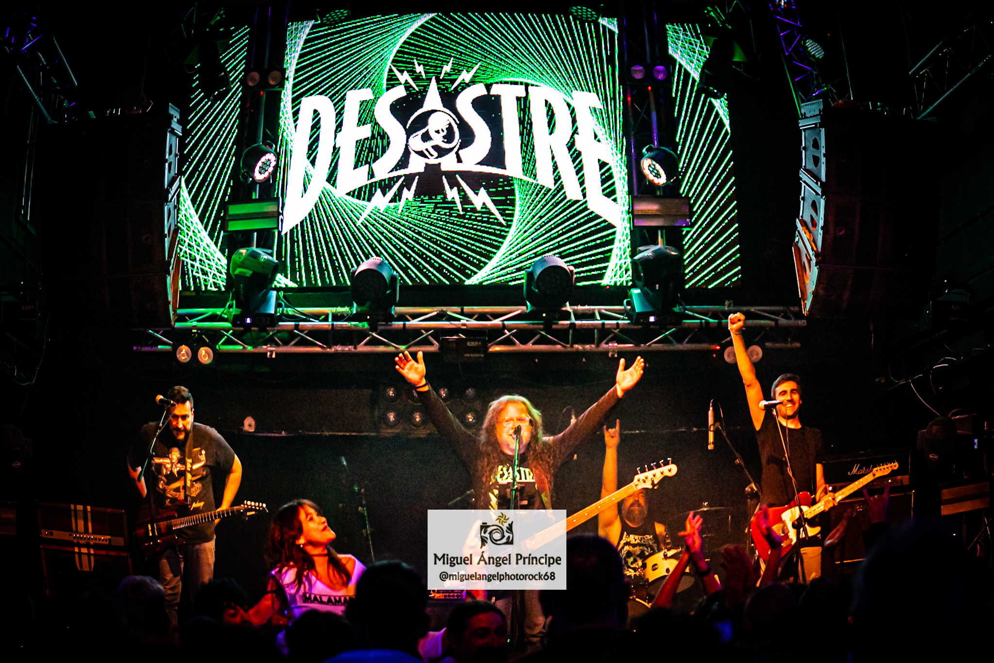 Después de los cambios en el backline el escenario fue ocupado por DESASTRE, un grupo formado allá por el año 1988 en el castizo barrio de Usera que pisó fuerte las tablas de la Nazca para presentar su nuevo disco Que Corra El Aire, un redondo con trece temas en su interior de los cuales el grupo regaló en su concierto once, siendo dos de ellos interpretados junto a dos grandes voces como son la de Zezy Symber de EMBERS OF PRIDE y Félix Lasa de LEIZE, conformando también la banda parte del potente repertorio con trompeta y saxofón en un Set List muy pensado para el directo que estos cuatro jinetes ejecutaron con pasión defendiendo el mismo con dos seis cuerdas, un baterista y un cantante que se lució también al bajo tras una Intro a modo de poema declamatorio antes de la «tralla».