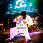 Marca de la casa fue sin duda la garganta del vocalista, una voz rugosa a la vez que desenfadada cargada de amplios registros dentro de los graves que resultaron perfectos para desgranar a gusto las que enfocaron el final con «Olí-Olá» y «Mierdaaa», homenajeando con esta última el famoso “Ellos Dicen Mierda” de LA POLLA RECORDS que el cantante defendió con garra y sobre todo con una actitud escénica imparable que no sólo se centró en dar dinamismo a la actuación, sino también en lanzar speechs muy del gusto del público que aportaron calidez a un directo vacilón, redondo y sobre todo trepidante que tuvo un fin de fiesta brutal con «Gallo Rojo, Gallo Negro» escrita por Chicho Sánchez Ferlosio en 1978, tema de gran fuerza ideológica por lo que de lucha contra la dictadura española tiene en tono metafórico y finalizar así con ella, una auténtica locura acompañada por la bandera republicana con una sala entera rendida a sus pies tras grandes ovaciones e imparables aplausos.