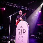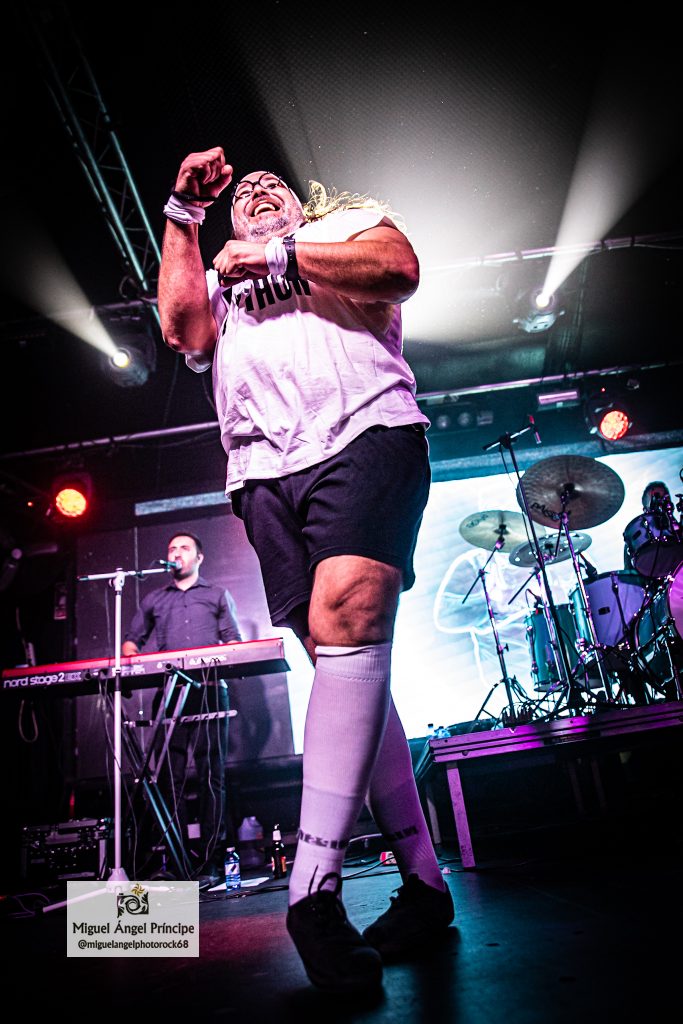 Divertido e inesperado fue el atrezzo que el grupo utilizó sobre el escenario para interpretar el primer bis «Funeral», pues llegó acompañada de una serie de lápidas que Fanfi iba colocando en la tarima acompañando a esta canción divertida donde las haya, con humor negro en una letra escrita por el propio Carlos Raya y sin duda muy propia para aliñar directos por el tono desenfadado y distendido con el que cuenta su composición, además del juego que da sobre el escenario para cerrar el mismo con «Irresistible» y la clase magistral de aerobic a cargo del incombustible Fanfi y la que cierra el disco Cuarto Creciente, «Despedida», una composición de nuevo lenta y cargada de sentimiento muy enfocada a su gente, a los que aplaudieron a rabiar un directo con garra que reunió todos los ingredientes para cerrar una noche de potente y poderoso Rock con una carga de positividad, sentimientos y tralla que no dejaron a nadie indiferente.