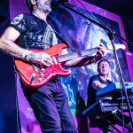 Tras un «Cause We’ve Ended As A Lovers», de nuevo con una clara vuelta a cierto Blues Jazz homenajeando a Jeff Beck en ese estilo donde Eduardo Pinilla se mueve como pez en el agua, volvimos al disco Stress para disfrutar sin tregua de la envolvente «Así Vivo Yo» con una voz algo más desgarrada para una canción de sensual melodía, con un excepcional lucimiento de la guitarra junto a una percusión cadenciosa y letra intimista de tintes melancólicos que al terminar permitió un nuevo giro en la noche, muestra de la gran creatividad de la banda que toca todos los registros aunque sea dentro de un mismo estilo como quedó demostrado en «Historia Irreverente» de incontestable charles y enérgico estribillo, con la colaboración de una guitarra más dura que nuevamente dará un giro gracias a la balada «Se Nos Queda Dentro» interpretada por una voz más profunda de Eduardo acompañado con precisión por batería, teclados y bajo que se marcaron un tema aderezado por la voz arrolladora de Cristina, quien otorgó un acabado prácticamente sin instrumentos regalando una voz junto al punteo final que hizo estallar al respetable en un coro de aplausos.