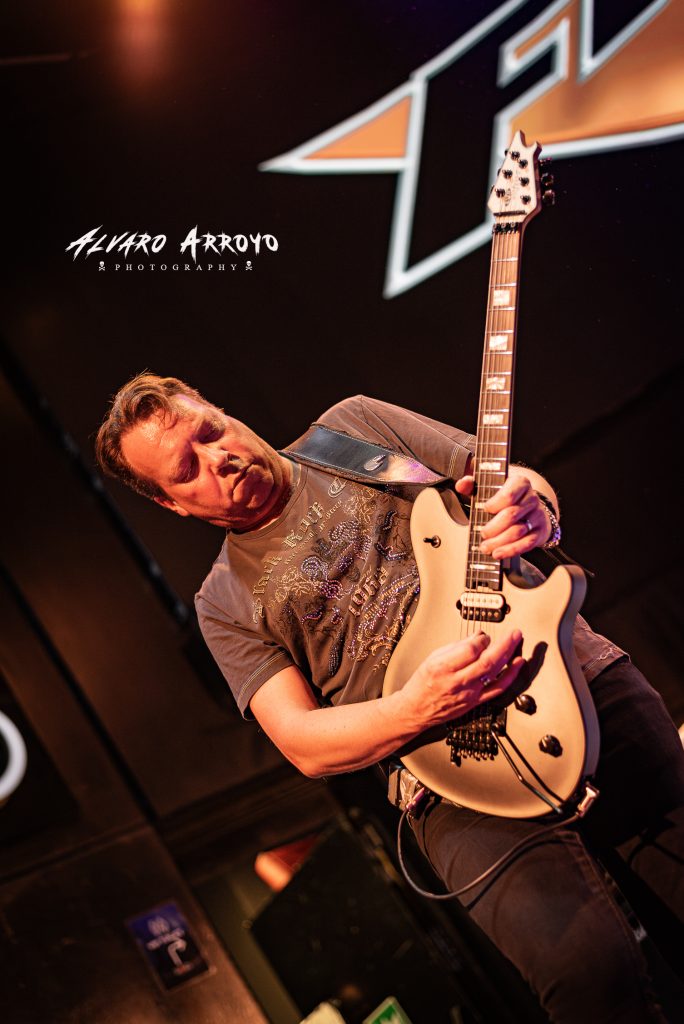 Media hora de espera que serviría para completar en mayor medida una buena entrada pero sin excesivas apreturas, es lo que esperamos antes de que la habitual voz en off que sirve de presentación a la banda británica nos advirtiera de la presencia sobre el escenario de “the mighty FM” ante el rugido de aprobación de la concurrencia y el inicio vacilón del «Digging Up The Night» con esos coros a lo DEF LEPPARD por parte de todos los integrantes arropando a la elegante voz del Sr. SteveOverland, todo ello mientras enlazaban para disfrute de los presentes con el clásico estribillo A.O.R. de «I Belong To The Night» con los teclados de Jem Davies por cierto uno de tantos colaboradores del recientemente fallecido Paul Di´Anno en algunos de los proyectos del ex MAIDEN en la difícil travesía del desierto de los noventa y el rasgueo de las cuatro cuerdas del siempre simpático y expresivo con las primeras filas Merv Goldworthy en primer plano, gozando desde el inicio la banda de un sonido claro y nítido perfectamente balanceado tomando el vocalista las seis cuerdas por vez primera en la noche para compartir melodías con la guitarra principal de Jim Kirkpatrick y todo ello sostenido por la eficaz pegada a los tambores de Pete Jupp.
