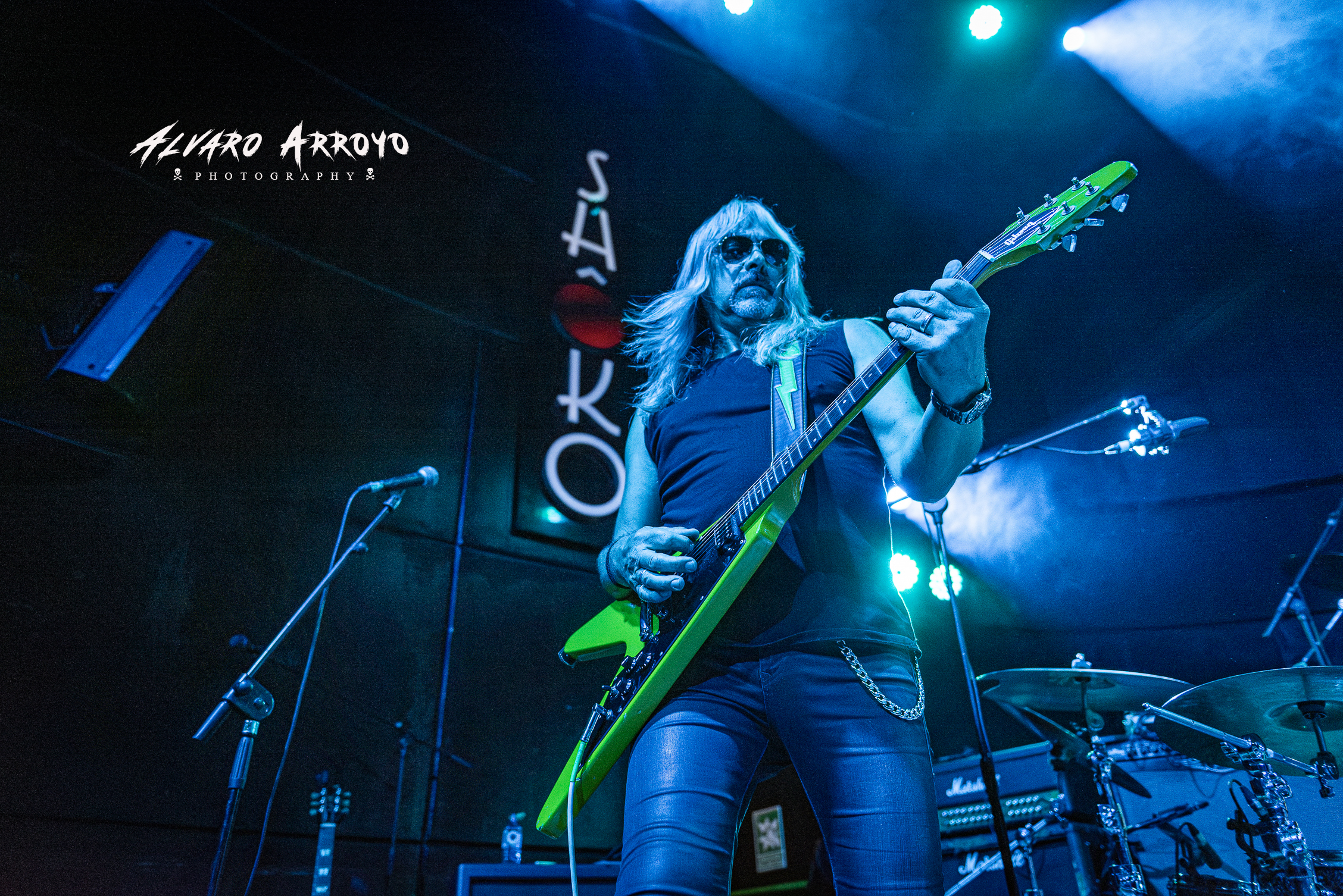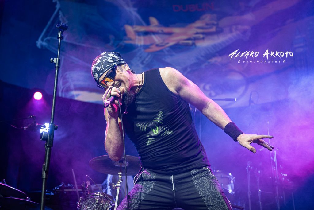 Una confusión con los horarios de apertura hizo que llegara a la mitad de la actuación de GRAND SLAM, donde el aroma de las clásicas melodías de guitarra de inspiración irlandesa en «Ther Goes My Heart» me dieron la bienvenida para ver acompañando a la guitarra de Laurence Archer a Benjy Reid (ex PRAYING MANTIS) a los parches y a Rocky Newton (sí, el bajista del MCAULEY SCHENKER GROUP) al bajo junto a la potente y enérgica voz de Mike Dyer, disponiendo la banda sobre la pantalla de la sala de unas animadas representaciones de los temas.