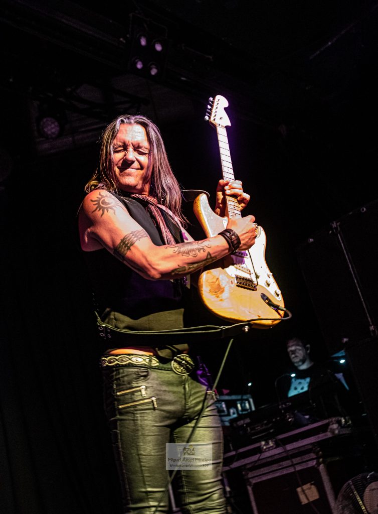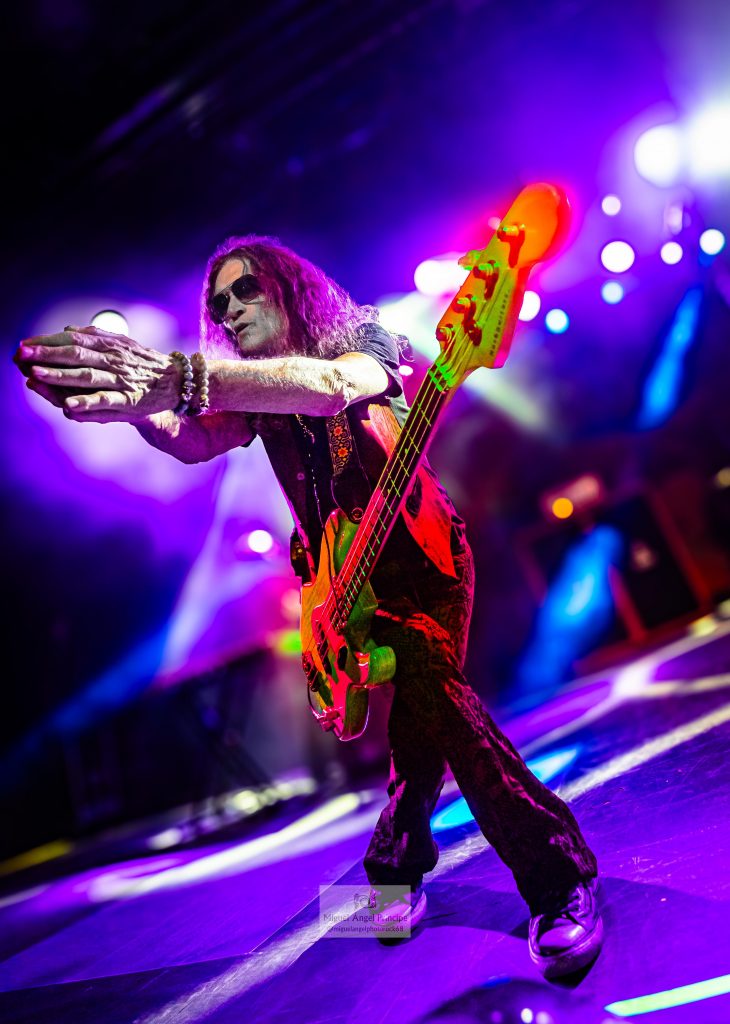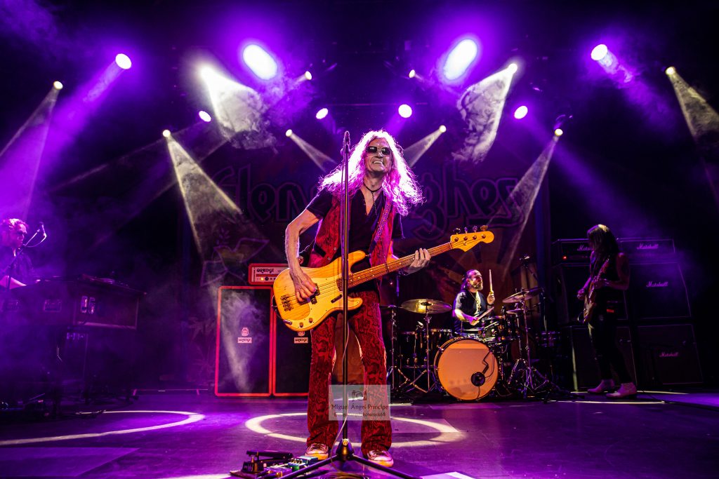 Sin contar con telonero alguno, a la 21:15 de la noche “Stormbringer” daba el pistoletazo de salida al concierto. Glenn Hugues mostró un aspecto excelente, no parece que tenga 71 años y eso se refleja en su voz. Ya sabíamos que en este asunto anda en la actualidad a años luz por encima de Coverdale y Gillan, siendo una de las causas para estar así a estas alturas de la película sabiendo dosificarse en el escenario. A pesar de tener un repertorio amplio, sólo tocó diez canciones y no estuvo dos horas cantando sin parar pero cuando hace funcionar su garganta, es para sentar cátedra. En los espectaculares agudos, en los graves, modulando, en la tesitura … todo perfecto como en el “California Jam” del 74, aunque para poder funcionar de ese modo necesita un gran acompañamiento que por supuesto tiene. A la guitarra está Soren Anderson. Lleva con él quince años y su mayor virtud es que sólo recuerda a Ritchie Blackmore en lo imprescindible guardando la esencia pero no copiando los solos ni la forma de tocar.