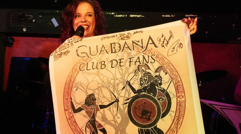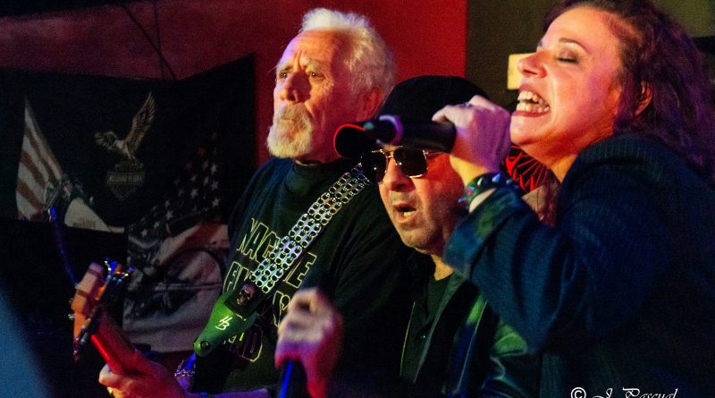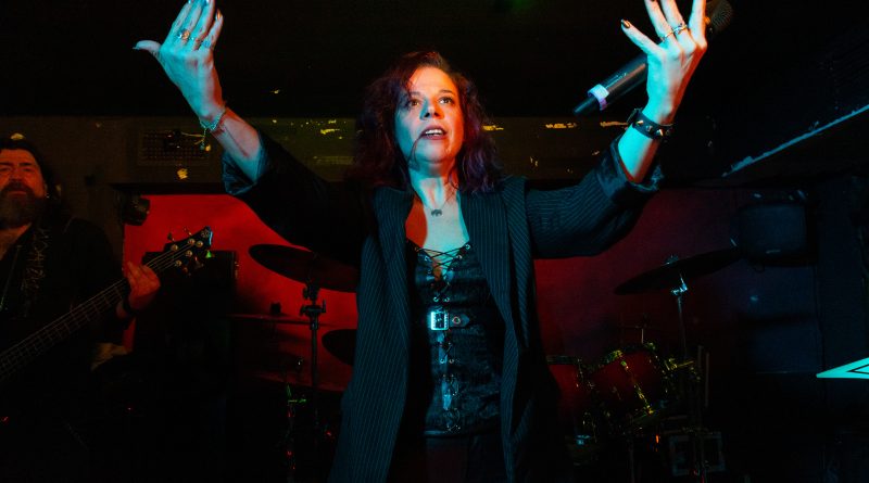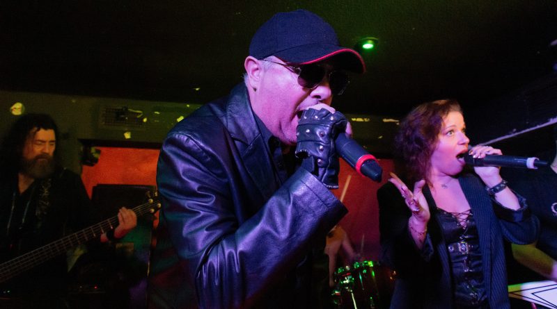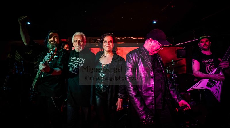 Glory tomaba la palabra para presentar «Cuenta Atrás» mientras nos decía, que esté pasado año para ella ha sido una cuenta atrás, pero en positivo, en la recuperación de su reciente enfermedad, de la que nos alegramos de que esté afortunadamente recuperada y en plena forma como pudimos comprobar a lo largo de la noche. Salva presentaba «Erytheia» tema que da título a su último trabajo y a cuya finalización un miembro del club de fans les hacía entre de una pequeña pancarta con la portada del mismo. «Una Aventura Más» Heavy Metal en su más pura expresión, a cuyo termino Glory procedía a presentar a la banda, con un pequeño solo por parte de cada uno de sus componentes. «Yo soy La Ley» un tema al que siempre he encontrado muy en la onda de OBÚS, perfecto para preceder a la llegada del invitado de la noche que no era otro que Juan Luis Serrano, el mítico bajista de OBÚS que se subía al escenario para interpretar todo un clásico «Dinero, Dinero» junto a ellos.