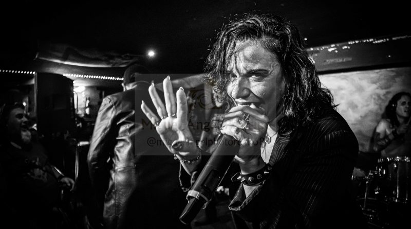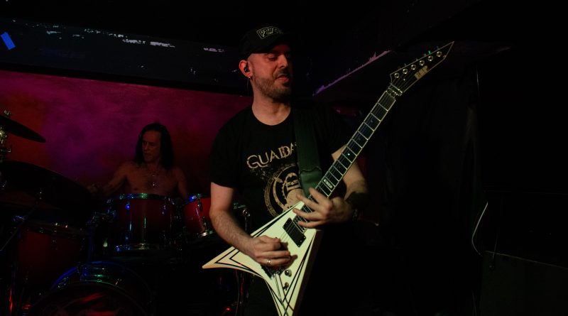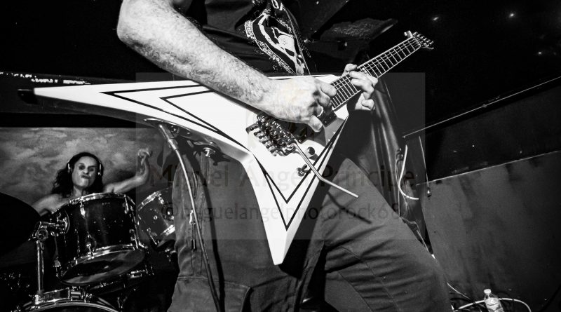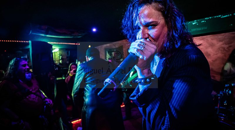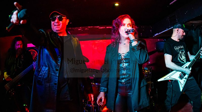 Una vez ya en el interior tomamos posiciones a pie de escenario donde ya se podía ver un ambiente bastante animado, propiciado en buena parte por la presencia de un nutrido grupo de miembros del club de fans de GUADAÑA, que suele acudir fielmente a sus conciertos, por lo menos así lo he visto en las ocasiones que he tenido la ocasión de ver a la banda y que le dan un toque extra de calidez a los mismos. «Retar al Abismo» y «Guerreros de la Tempestad» Power Metal potente para el arranque, cuyo título bien podría servir para definir de alguna manera lo vivido en la Sala Venom, una banda de guerreros del Rock descargando toda su energía como una auténtica tempestad sobre el escenario. «Sangre de mi Sangre» más en la línea sinfónica, con las voces de Glory y Salva sonando perfectamente armonizadas, daba paso a “Ser Uno Mismo” presentado por Salva continuaba con rapidez y potencia con un destacado papel de Tony a la guitarra que estuvo magistral durante toda la noche desgranando riff y punteos, siempre apoyado por la gran pareja rítmica formada por Moyano “El Búfalo” a la batería y el recién llegado José M. Pérez en el bajo, al que pude ver tan solo hace unos días formado parte de DAVIL FANTASIES.
