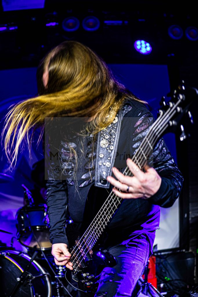 Tras una Intro inquietante con narrativa de voz en off incluida comenzó una escalada de riffs para dar paso a «Far Beyond The Thunderdome», rompiéndose con ésta el hielo gracias a una sucesión de potentes baquetazos para marcar un ritmo trepidante aderezado con seis cuerdas que durante toda la velada gestionaron melodías ochenteras, mezclándose sonidos del Heavy & Power más clásico para encajarse entre los mismos una voz que en inglés y muy ensamblada con las composiciones ejecutó generosamente un repertorio de diez temas centrados en dar vida sobre el escenario al último trabajo de la banda con un nexo en común para todas las canciones, siendo marca de la casa los pegadizos estribillos que acompañaron tanto a la primera como a las que la sucedieron con la misma calidad y marcada vertiginosidad de la mano de «Kill The Night» más contundente en cuanto a cadencia o la desbordante «Rise Above The Dread» antes de un cambio de guitarra para seguir con un espectáculo que caló desde el principio entre los asistentes, siendo esta última la única pista que no se encuentra dentro del redondo Sorrow Turns To Dust pues está extraída de un EP editado en noviembre del 2023 de nombre More Sorrow.
