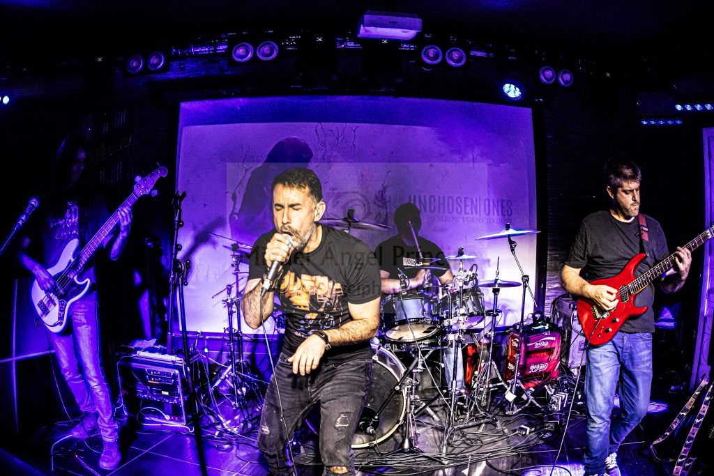 En calidad de artistas invitados abrieron la tarde-noche los de Vigo (Pontevedra) UNCHOSEN ONES para desgranar su disco Sorrow Turns To Dust, un trabajo que cabalga entre el Power y el Heavy clásico coqueteando con un Hard Rock de tintes europeos gestionado por estos cuatro jinetes del Metal que tras un primer y exitoso EP autoproducido en 2021 titulado Kill The Night, se lanzaron afortunadamente para sus incondicionales y tan sólo un año después a grabar el larga duración mencionado.
