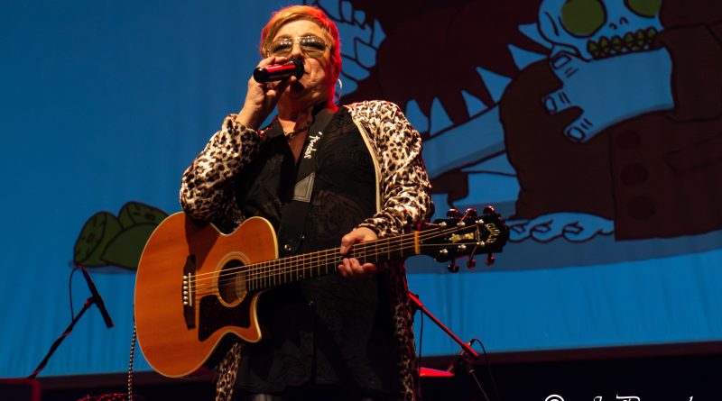 A la hora indicada tomaba la palabra Jesús Puente de Universo Rock, para hacer la presentación y toda la banda tomaba posiciones con Barrado luciendo una corona sobre la cabeza y un bastón a modo de cetro, para acometer los primeros compases de «Rey del Mundo» que tuvieron que interrumpir ante la falta de sonido de su micrófono, para volver a comenzar desde el principio una vez solucionado ese pequeño contratiempo y arrancar ahora si con toda la potencia con una banda de auténtico lujo sobre el escenario del teatro, encabezada por Javier a la Voz, Pilar Machi, guitarra acústica y voz, Luis Cruz y Luis Rodrigo a las guitarras y los coros, Carlos Mirat a la batería, para finalizar con Josele Megía y Paco Yebra que se irían intercambiando a lo largo de la noche para hacerse cargo de las cuatro cuerdas. «Muéveme» abandona los territorios más Hard Rockeros del tema anterior para llevarnos a los de su primo hermano el Blues, y transitar poco después por otros más cercanos al Rockabilly con «Dentudo», mostrándonos ya en esos tres primeros temas que sin abandonar el rock como principal línea compositiva, la música de Javier y los suyos es capaz de transitar entre un amplio espectro sin perder la coherencia, fusionando y navegando por estilos que van desde el Folk, el Blues, el Hard Rock y el Rockabilly, pasando por el Punk y el Pop.
