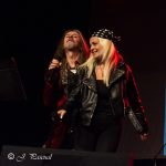 El siguiente tema subía al escenario a tres nuevos invitados, Luis Garcés a la batería y Ángel Seoane y Emi Gago para unir sus voces a las de Javier y Pilar e interpretar todos juntos «Esto es Rocanrol» sin duda el tema ideal para anticipar un fin de fiesta que se sentía cercano y al que es conjunto de voces sobre el escenario dotaron de un punto extra, y con el que estoy seguro de que buena parte del público asistente tuvo que contenerse para no abandonar sus asientos y ponerse a bailar. «Mientras Esperas» el tema que compuso Javier en los últimos días de vida de su esposa enferma de cáncer, que comenzaba con Javier a la guitarra acústica acompañado de Pilar con el ukelele, y al que se fueron uniendo el resto de componentes de la banda, finalizando con un poema recitado por Javier. Personalmente durante el tema no pude menos que sentarme y olvidarme por unos minutos de la cámara de fotos y mientras lo escuchaba rememorar la figura de una buena amiga a la que tan solo cuatro días antes del concierto se llevaba esa terrible enfermedad. El triunvirato final lo protagonizaban «Paz» en formato acústico y de la que recomiendo pararse a escuchar la letra, cuando se tenga ocasión, tarea en cualquier caso recomendable con cualquiera de los temas de Barrado, «Me Conoces» tema inédito con el último invitado de la noche Miguel Rodríguez al víolin, para despedirse con el que será su próximo single «Veloz» adrenalina pura que arranco ahora si a buena parte del público de sus butacas acercándose a pie de escenario para cantar y bailar junto a la banda.