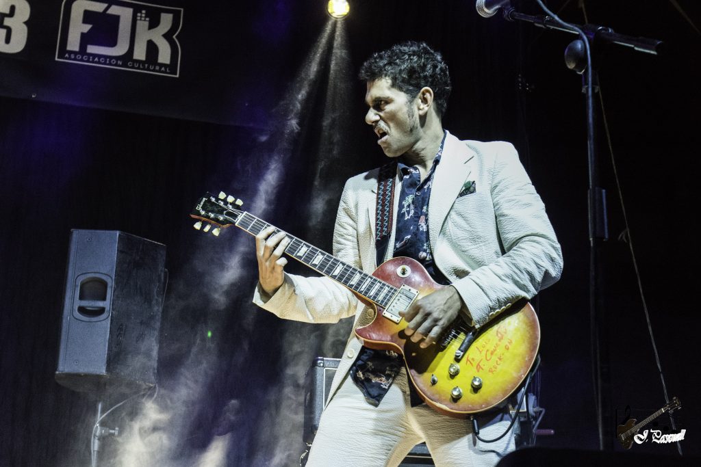 Apenas unos minutos después, tomaba posesión del escenario LUIS CRUZ y la LA FURGOBAND, formada por Luis Rodríguez a la guitarra, Pedro Navarro a la batería, un jovencísimo Niko al bajo, que además en esta ocasión jugaba en casa y como no Luis Cruz que a estas alturas de la película no necesita presentación a la guitarra y la voz. Con un tema instrumental «Gallega, Celta y Meiga» a modo de intro, autentico delirio musical que aúna el Rock progresivo con el Folk, para poco después llevarnos «Con la Música a Otra Parte» a sonidos más Hard rockeros, o los aires más chulescos de «Rocker» dejando de manifiesto una de sus grandes capacidades el saber moverse, siempre dentro del Rock y el Blues aunando estilos y tesituras diferentes dejando siempre su sello personal y con la guitarra como gran protagonista.