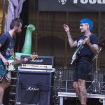 Llegamos con tiempo de sobra, para ver un poco el ambiente que se respiraba en la plaza de toros de Aranjuez, el lugar elegido para la celebración del mismo en el que el escenario, ocupaba una parte del coso taurino, mientras una serie de puestos, tanto de merchan de las bandas como de diferentes asociaciones, ya que el festival tiene un carácter benéfico, completaban el círculo de la misma. La primera banda que tuvimos ocasión de ver fue El MONSTRUO DEL LAGO, cuarteto madrileño que nos dejó una buena dosis de Rock alternativo, muy cercano al punk, aire desenfadado, música y letras reivindicativas y una buena dosis de humor, en cada presentación, hicieron disfrutar al público asistente con temas como «Mr Wonderful» , «Delfines» o «Parálisis», en definitiva una banda muy adecuada para arrancar la fiesta.