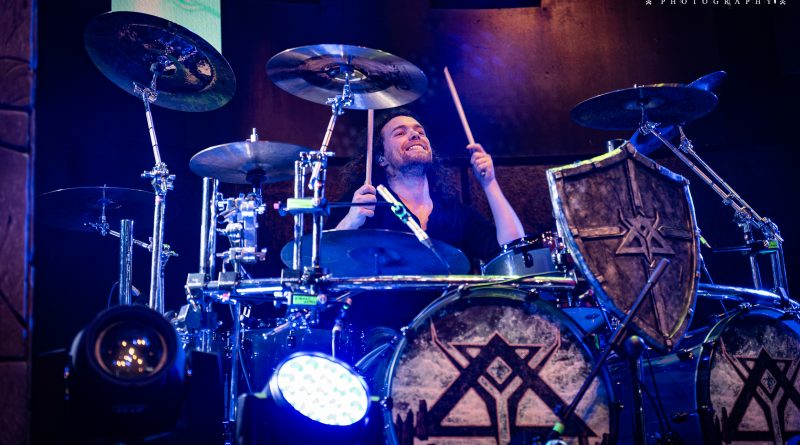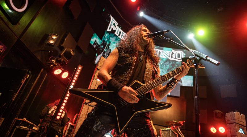 Compartiendo buena parte del backline que sin duda es una de las principales ventajas para el público en este tipo de giras al ser los cambios entre las bandas muy ágiles, ya teníamos en escasamente veinte minutos desde el final de la actuación de MASTERPLAN a Jo Nunez encima de la tarima de su batería debidamente «tuneada» con escudo central y pilares monolíticos con el logo de la banda a ambos lados, alentando el baquetero con sus brazos en alto al público durante la Intro que anunciaba la presencia sobre las tablas de FIREWIND con «Salvation Day» haciendo acto de presencia los restantes miembros del cuarteto con este himno de Heavy Metal enérgico y potente que abre su reciente entrega discográfica Stand United cuya portada, se mantendría a través de una animada representación digital en la pantalla central del escenario durante toda la actuación empalmando el grupo de un tirón ésta con la celebrada «World On Fire» y la velocísima «Destinación Forever», recayendo todas las miradas sobre las evoluciones del fantástico guitarrista griego Gus G. por su aparente facilidad para mezclar tanto agresividad como melodía sobre el mástil de sus seis cuerdas.