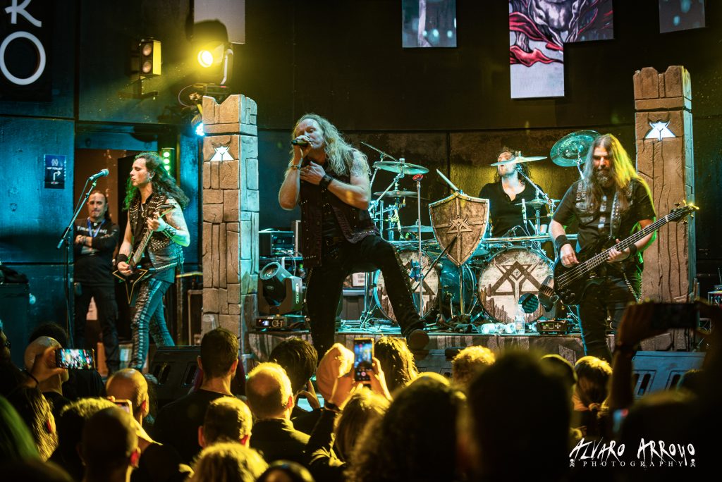 No tanto tiempo aunque si alrededor de una década llevará la banda de origen germano sin ofrecernos nuevas composiciones, algo que parece próximo a su fin con el adelanto de su nueva obra a través del single «Rise Again», tema elegido para presentarse ante la audiencia madrileña liderados actualmente a la voz por un Rick Altiz a quien al menos desde el borde del escenario, tardaríamos algunas canciones hasta lograr algo más que no fuese sólo intuir su voz por la maraña de sonido con la que el grupo nos dio la bienvenida debido a la guitarra de Grapow y a la batería de Efraim Larsson muy por encima del resto de instrumentos, lo cual hizo muy difícil disfrutar debidamente de las siguientes «Enlighten Me» y «Spirit Never Die» que son dos de las composiciones más destacadas de su fantástico homónimo debut recibidas por el público y pese a todo con los puños en alto.