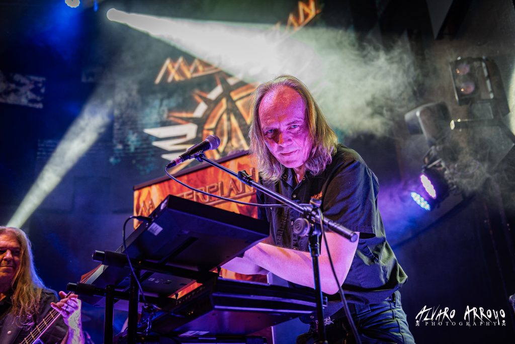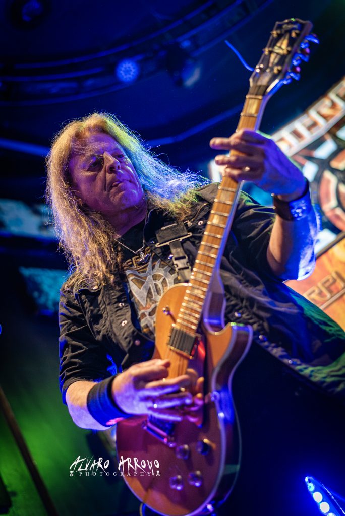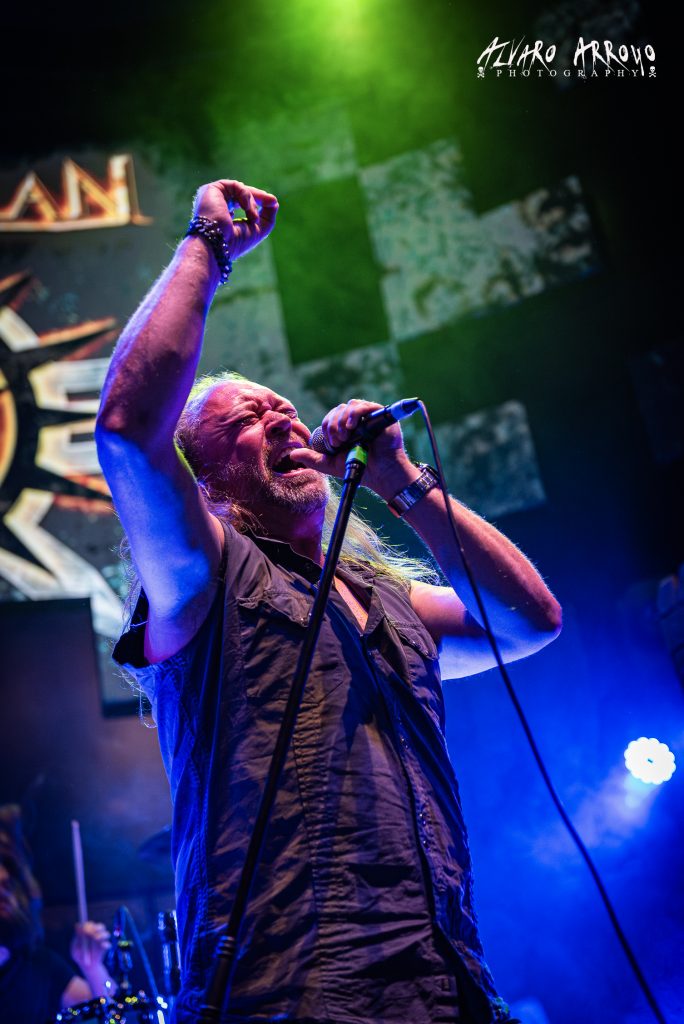 Al otrora escudero de Mr. Ozzy Osbourne y único miembro fundador, le acompañaron en esta nueva encarnación de la banda la base rítmica compuesta por Petros Chirsto al bajo y Johan Nunez a la batería, liderando la formación desde el 2020 el espigado vocalista alemán Harbie Langhans con un extensísimo currículum a sus espaldas en algunas de los grupos con más solera dentro del Power Metal europeo (KAMELOT, RHAPSODY, AVANTASIA) y al que pudimos disfrutar desde el inicio en plenitud, dejando una muestra tanto de su versatilidad como de su chorro de voz en la más hardrockera «Destiny Is Calling» con vigoroso estribillo en onda ACCEPT / PRIEST.