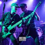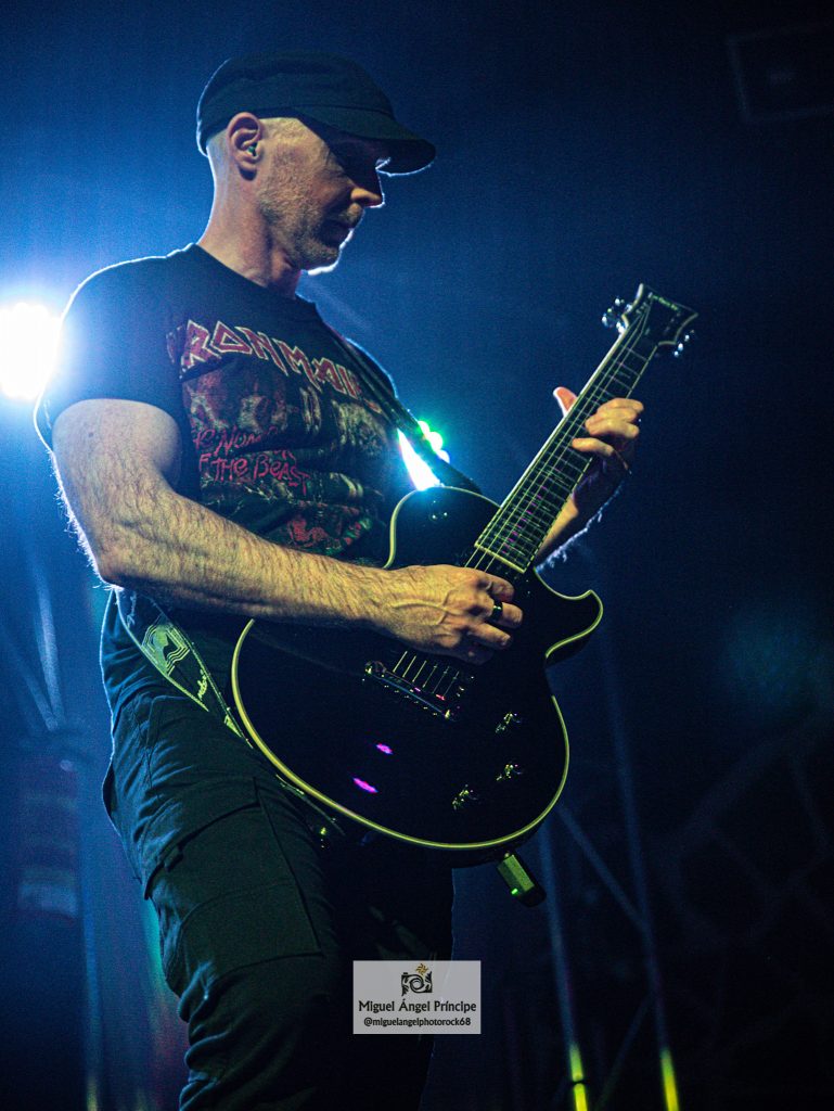 Sin duda en esta banda, el tándem protagonizado por los dos guitarristas es incuestionable compenetrándose ambos a la perfección e intercambiándose sin prejuicios ni fatuidades punteos y ritmo casi a partes iguales, siendo la figura de Jorge Pacheco un pilar en cuanto al sonido personal que abandera el grupo se refiere a la vez que una mano prodigiosa que aportó maestría en «No Quiero» al requerir la misma de una melodía mantenida para la cual se coreografió con el bajista, enfrentando ambos sus mástiles para gestionar una buena presencia escénica y mirar luego a su pareja instrumental Fariña acordando con él las notas justas que les hacen ser ese binomio perfecto, compacto, que termina y empieza los temas siempre teniendo muy presente el nexo de unión entre las canciones para sacar el mayor rendimiento a finales y comienzos como hicieron con el inicio de «Niños De La Guerra», centrando Jorge los acordes en la zona media del mástil y en la parte más alta de las pastillas para engrosar arpegios y hacer un juego redondo que favoreció las entradas del vocalista, aportando así cierta distorsión que rozara el Hard & Heavy aunque teniendo siempre muy presente un Rock con el que Pacheco busca ritmos pegadizos que fueron muy bien entendidos y acogidos por el respetable.