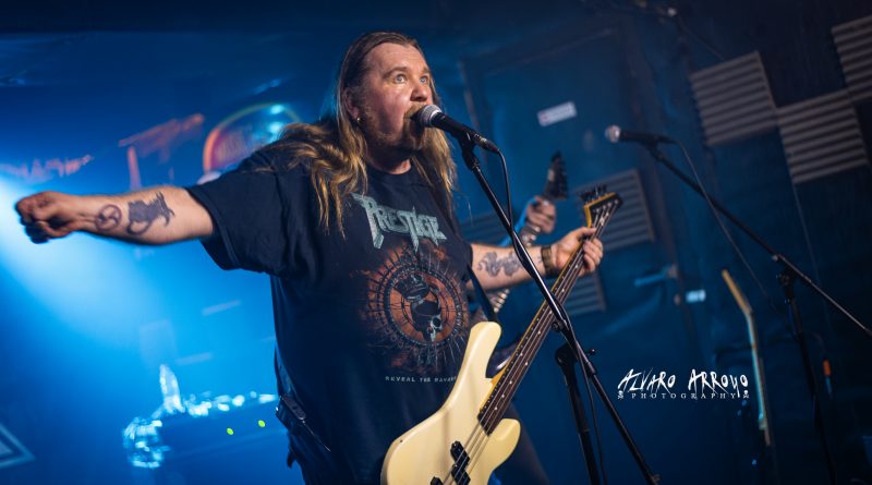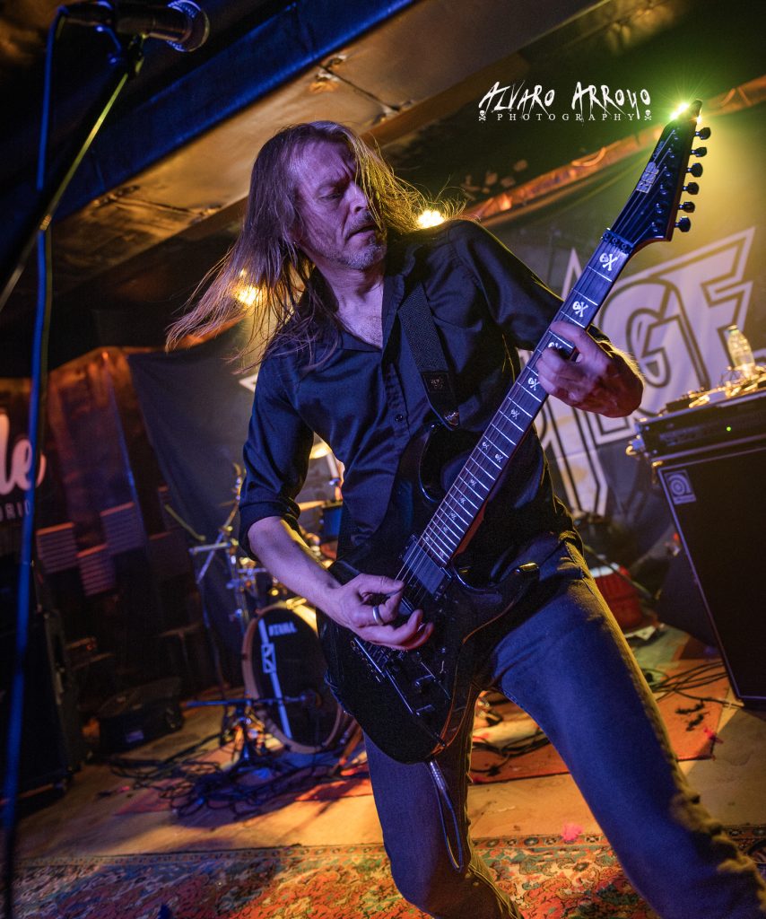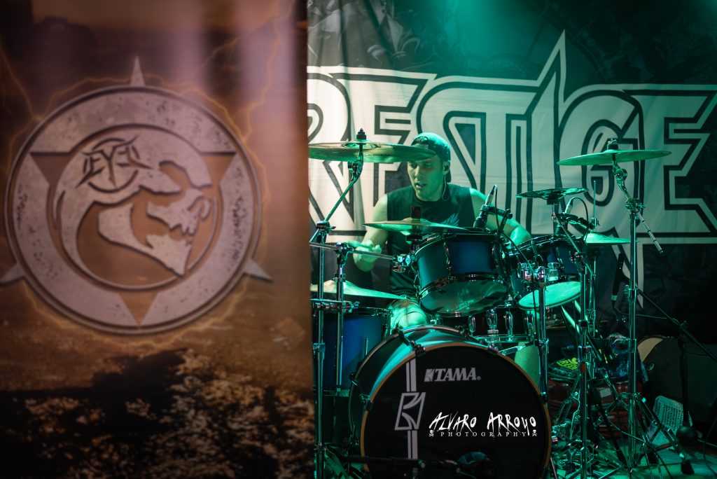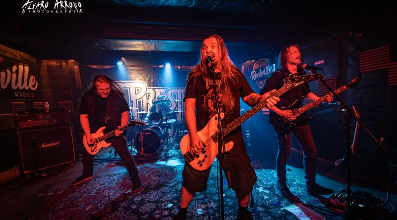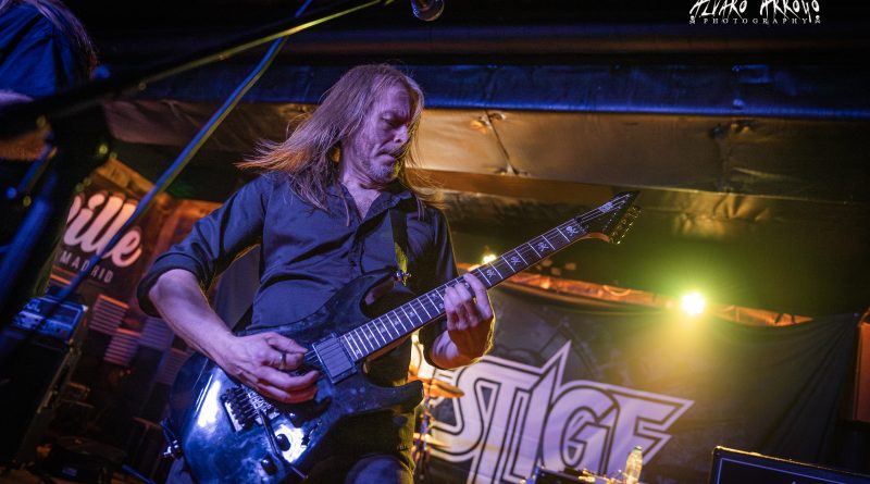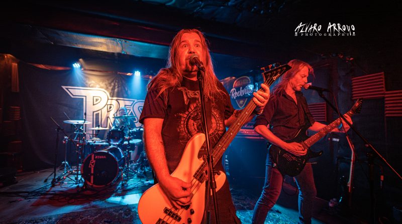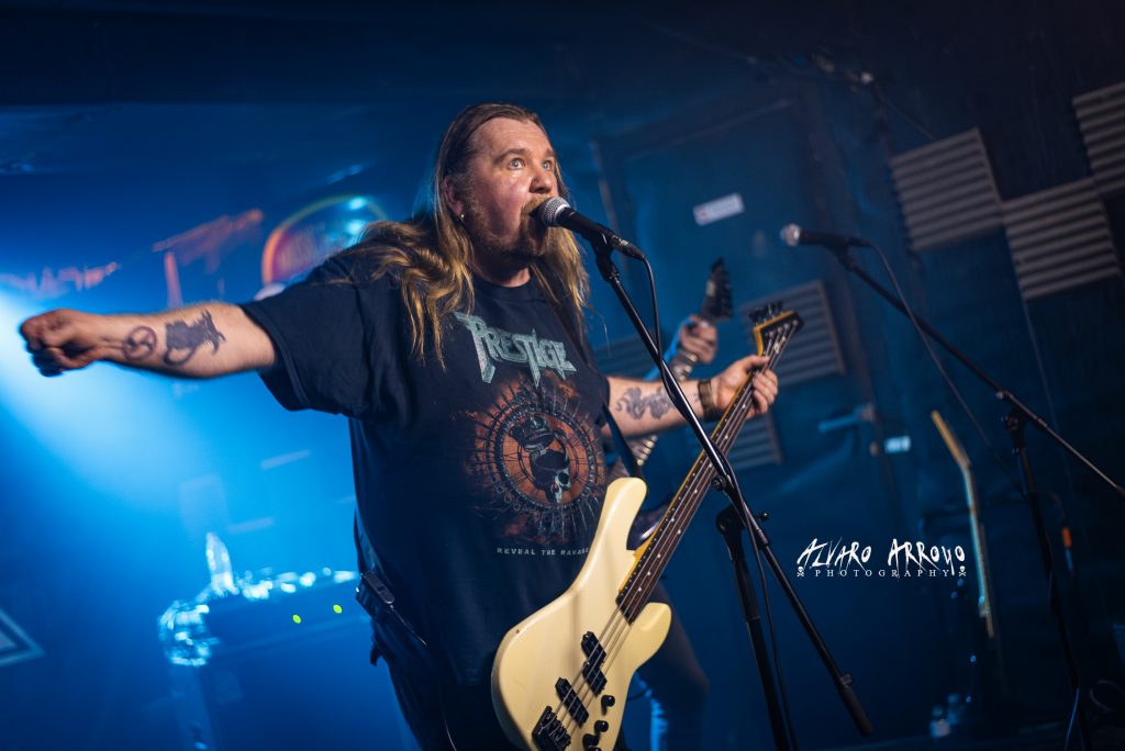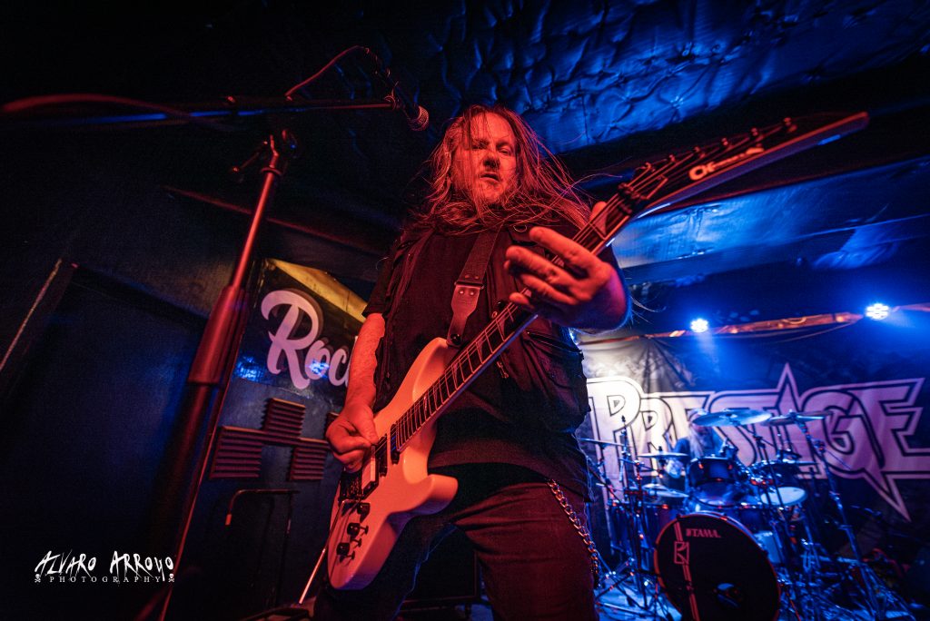 No habría que esperar mucho para tener a los finlandeses PRESTIGE sobre el escenario y de hecho la organización, tuvo que recordarles con gestos sobre sus relojes la hora programada para el inicio de la actuación ante la predisposición de la banda por dar inicio a las hostilidades poco más de quince minutos después de la finalización del anterior directo. El grupo iniciaba con muchas ganas en Madrid una mini-gira de cuatro fechas en España para presentarnos debidamente su buenísimo regreso discográfico del 2021 de nombre Reveal The Ravage.