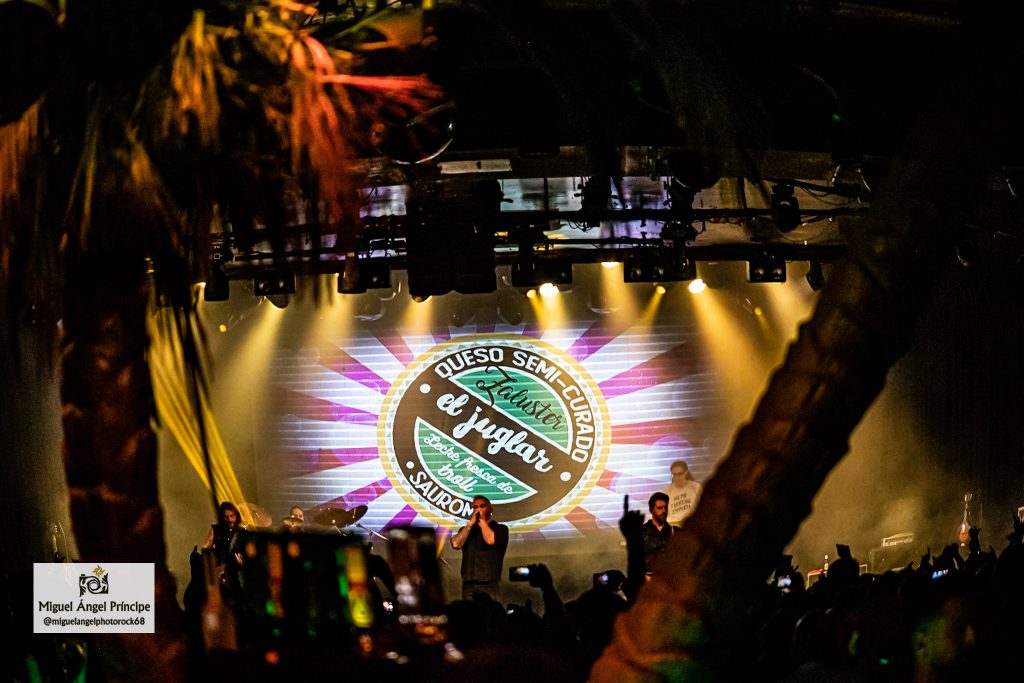 La descarga iba avanzando mientras tres pantallas gigantes adornaban el espectáculo mostrando imágenes representativas de la banda, carátulas de las diferentes portadas de los discos y videoclips de las pistas que iban sucediéndose, aportando los audiovisuales una gran viveza unida a la siempre activa actitud escénica del bajista José Gallardo, complemento perfecto en cuanto a percusión se refiere del implacable baterista Antonio Ruiz quien encontró sobre las tablas a su pareja perfecta a la hora de potenciar la cadencia rítmica tan dispar que cada una de las canciones requirió, una rotundidad aportada por el cuatro cuerdas que no estuvo reñida con su imparable baile sobre el ruedo pues recorrió la tarima de un lado a otro acercándose en primera fila a la gente y alzando continuamente sus manos para empoderar aún más a la entregada audiencia.