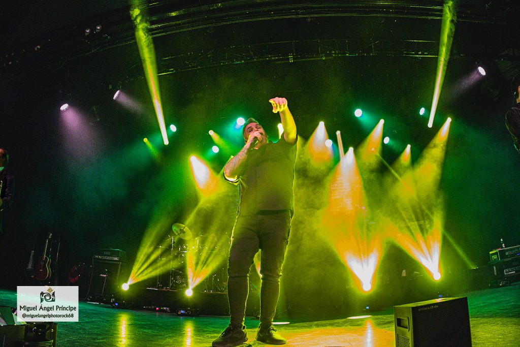 Sonando la tradicional Intro con un público que no ocultaba emociones, nervios e ilusión comenzando ya a levantar las manos, se fueron situando sobre el escenario los seis jinetes con sus instrumentos musicales en ristre preparados para entregar alma y corazón, jaleados aún a oscuras la escena por los cientos de incondicionales que empezaron a saltar con ellos al arrancar al mismo tiempo focos, sonido atronador y las primeras notas de «El Monte De Las Ánimas», momento que motivó a la gente para los primeros cánticos épicos mientras se arrancaba Miguel Ángel, un vocalista que estuvo en auténtico estado de gracia durante todo el concierto ofreciendo speechs cercanos y otorgando una voz redonda a todos los temas con una ajustada afinación que imprimió personalidad a cada una de las canciones como en la siguiente «Amanecer», tema que contó con unos impecables y calurosos teclados a cargo de Santi Carrasco junto con una preciosa rítmica también extensible a «La Hija De Las Estrellas» gestionada por el guitarrista Narci Lara, un auténtico hombre renacentista que alternó como siempre y como nunca diferentes instrumentos musicales tan dispares como la flauta, la pandereta, el violín o la gaita para hacer especial la singular idiosincrasia del grupo.