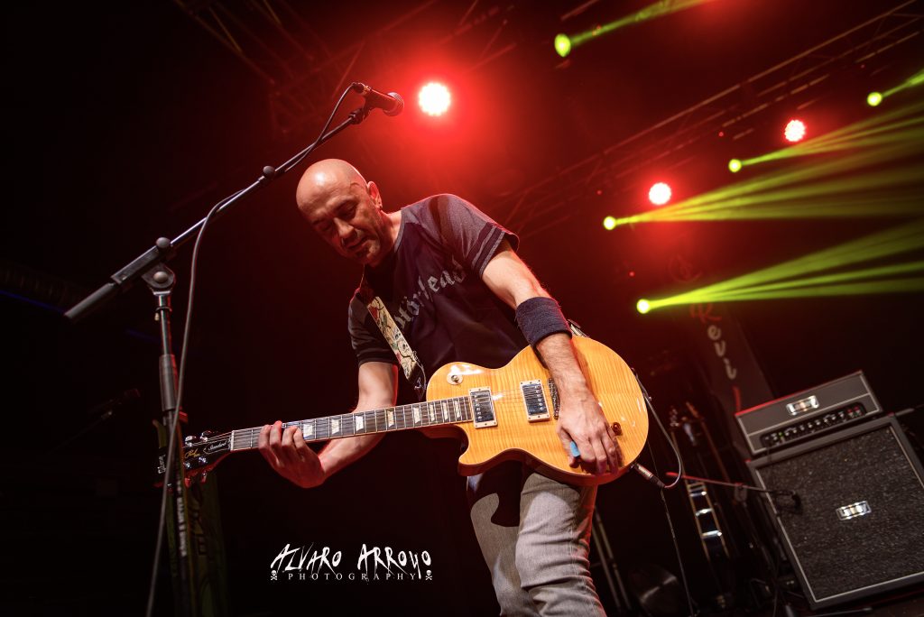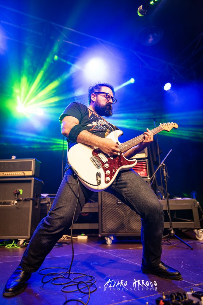 Ya en la recta final de su actuación, tras anunciar la única versión de la noche, un psicodélico inicio instrumental y el uso del slide por parte de Jorge, nos descolaría un poco antes de reconocer el archiconocido himno de PINK FLOYD “Another Brick In The Wall, Part 2”, tomando sentido esos brazaletes rojos y blancos con su logo que lucían los miembros de la banda, haciendo muy interesante un tema tantas veces escuchado,  con la vuelta de tuerca que le dio el cuarteto y en especial su guitarrista con un remozado solo a base de efectos. Fin entre agradecimientos, dejando un gran sabor de boca entre los presentes.