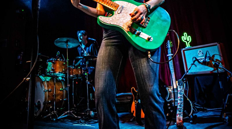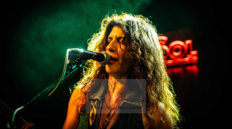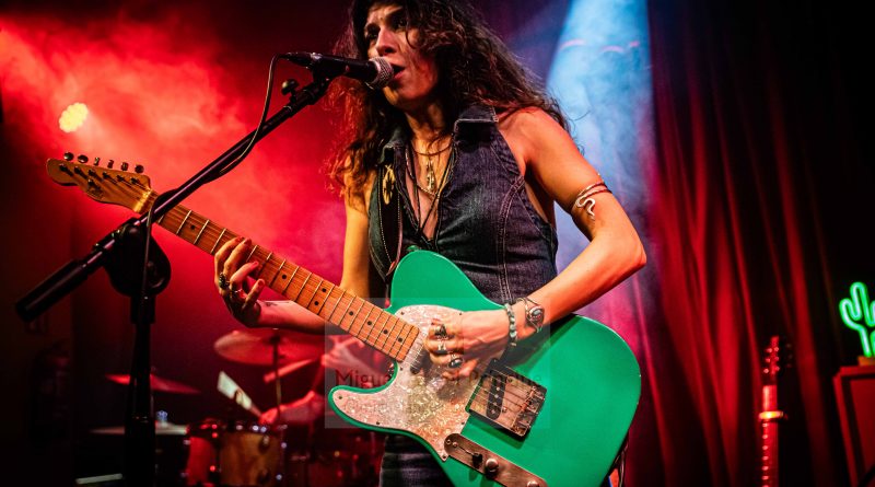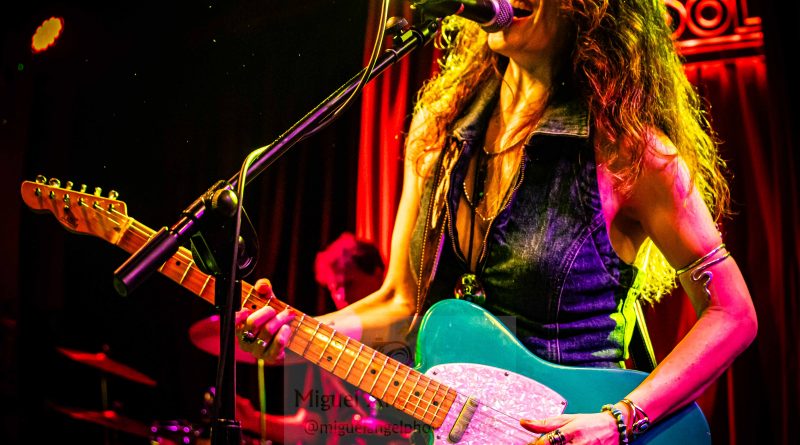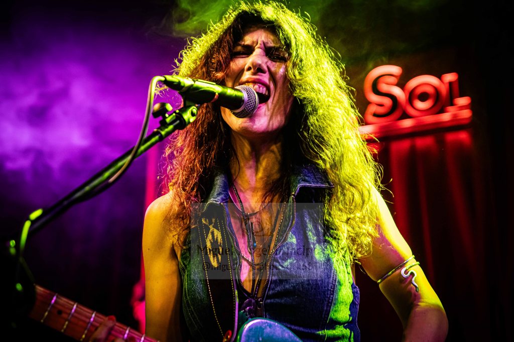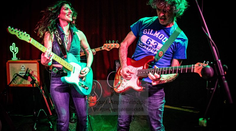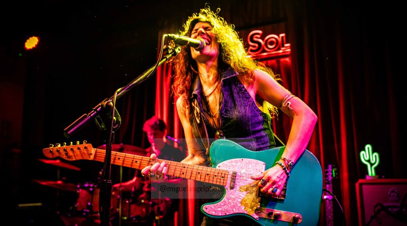 Con un inicio baquetero por parte de Juli preparando el terreno, la aparición en escena del bajista David como mecenas ambos junto con Susan durante todo el Sonora Tour y un cactus luminoso sobre el amplificador de la guitarrista para adentrarnos mentalmente en ese desierto fronterizo como metáfora de las fusiones del Rock Americano más crudo y a modo de Intro para calentar motores, comenzó el directo apareciendo la más genuina Susan Santos para arrancarse con «Snakebite» como segunda pista del redondo Sonora cuyas ocho composiciones fueron ejecutadas intercalándose con anteriores temas de su pretérita discografía, conformándose así un perfecto repertorio de dieciséis canciones a las que dio paso la mencionada en un estallido de Rock And Roll con el que empezó a moverse esa guitarra mimetizada con la cantante en una explosión de vitalidad que fue seguida de la también novedosa «Have Mercy» como una pista vacilona, sensual, de pisada fuerte y cuerdas generosas que ostenta el honor de haber sido la primera compuesta para este disco hijo de un generoso crowdfunding, una joya de tintes bluseros que nos puso en aviso sobre lo que se avecinaba en una velada donde prácticamente sin darnos cuenta se comenzó a crear una atmósfera de pura química entre los admiradores y los admirados.