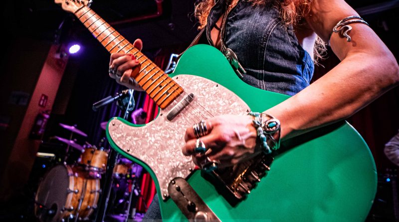 Los aplausos y las ovaciones no se hicieron esperar mientras Susan sujetaba como un talismán una preciosa, apropiada y brillante guitarra aguamarina dedicando unas palabras de agradecimiento y complicidad al respetable antes de remontarse a su Skin & Bones con la tejana «Dusty Road», tema muy acompasado por los coros de ambas bases rítmicas que tuvieron en este sentido un gran protagonismo durante toda la noche al igual que defendiendo sus respectivos instrumentos mientras las botas camperas de Santos golpeaban la madera de la tarima, siguiendo la vocalista de esta forma el ritmo impuesto por ella misma y sus seis obedientes cuerdas imposibles de seguir visualmente tanto en ésta del 2016 como en la siguiente del 2020 «Fever», pista con la cual el ambiente empezó a cobrar color gracias a unos apropiados focos rojos aderezados por una neblina ideal para un tema de pegadiza languidez con una línea vocal muy cálida de genial gravedad que impulsó los primeros saltos de la cantante y el acercamiento hacia un entregado público que ovacionó esa actitud, comenzando en este punto el crescendo del directo al volver la banda al presente para otro del Sonora de nombre «So Long» en el cual Susan jugueteó con el mástil de su más preciado bien en esos momentos para acercarse al personal que jaleó el tema muy del gusto de los más cafeteros del Rock serpenteado por un Country ejecutado con nitidez, brillo y buen gusto seguido tras un cambio de guitarra por el «Call Me Tonight», melodía de ritmo más trepidante que dejó patente la variedad en la articulación de los temas que presenta este último trabajo poseyendo cada una de sus canciones personalidad propia, única e irrepetible y creándose con ésta que sonaba un auténtico climax en la sala.